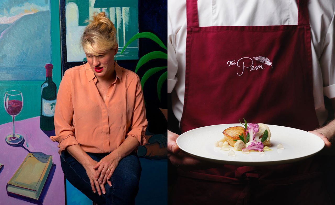 Guests were served a selection of canapes, including some delightfully fluffy mini cod cakes and savoury beetroot cannolis, followed by a four-course tasting menu and wine pairing that echoed the Italian influences of Cadogan’s Lake Como-inspired Stanza collection. The artist, known for her figurative paintings exploring literature and the still moments of life, displayed The Writer’s Nest – a wistful work born of memories and longing for drinking wine and reading.