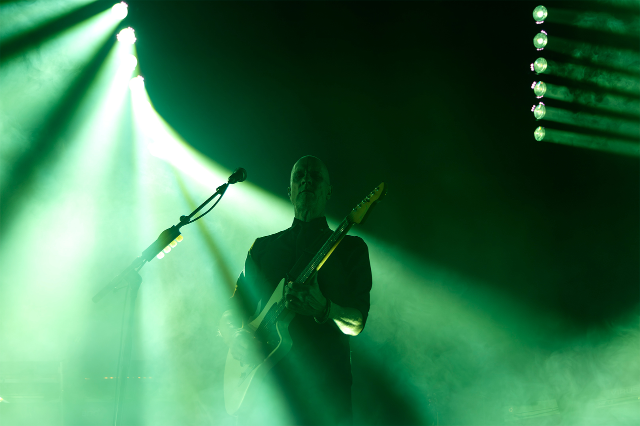 The main set ends with the chugging beat and overdriven guitar solo of The Joy Circuit, the anthemic and joyfully received I Die: You Die, and one last clap-along to We Are Glass. But then, Telekon over, the encore is a different beast.