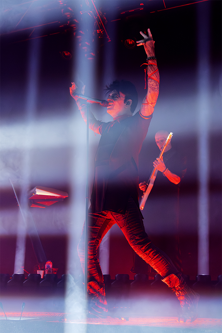 Numan is a captivating performer, fluidly moving to every nuance he crafted in 1980 and singing with everything he’s got, contradicting his 67 years as he glides with the skill of a much younger man. His unique style takes in every inch of the stage, set across two levels with underfloor lighting – it’s an effective addition to the music’s dramatic extravagance, as is the meticulously-timed lighting (a performance in itself).