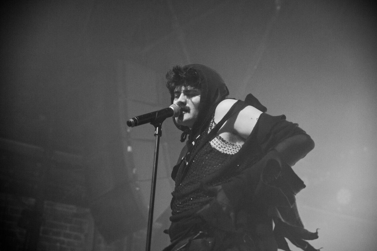 Posing with his arms stretched out, Haden cut an ominous figure in his first iteration. The end of Audience prompted a quick costume change. A perfect showman, he delicately pirouetted as a ballerina dressed in white. The graceful dynamism of his movements contrasted with the deliberate discordance of Departures. Acid Rain was a notable divergence, a haunting melody highlighting Haden’s velvety-smooth voice.