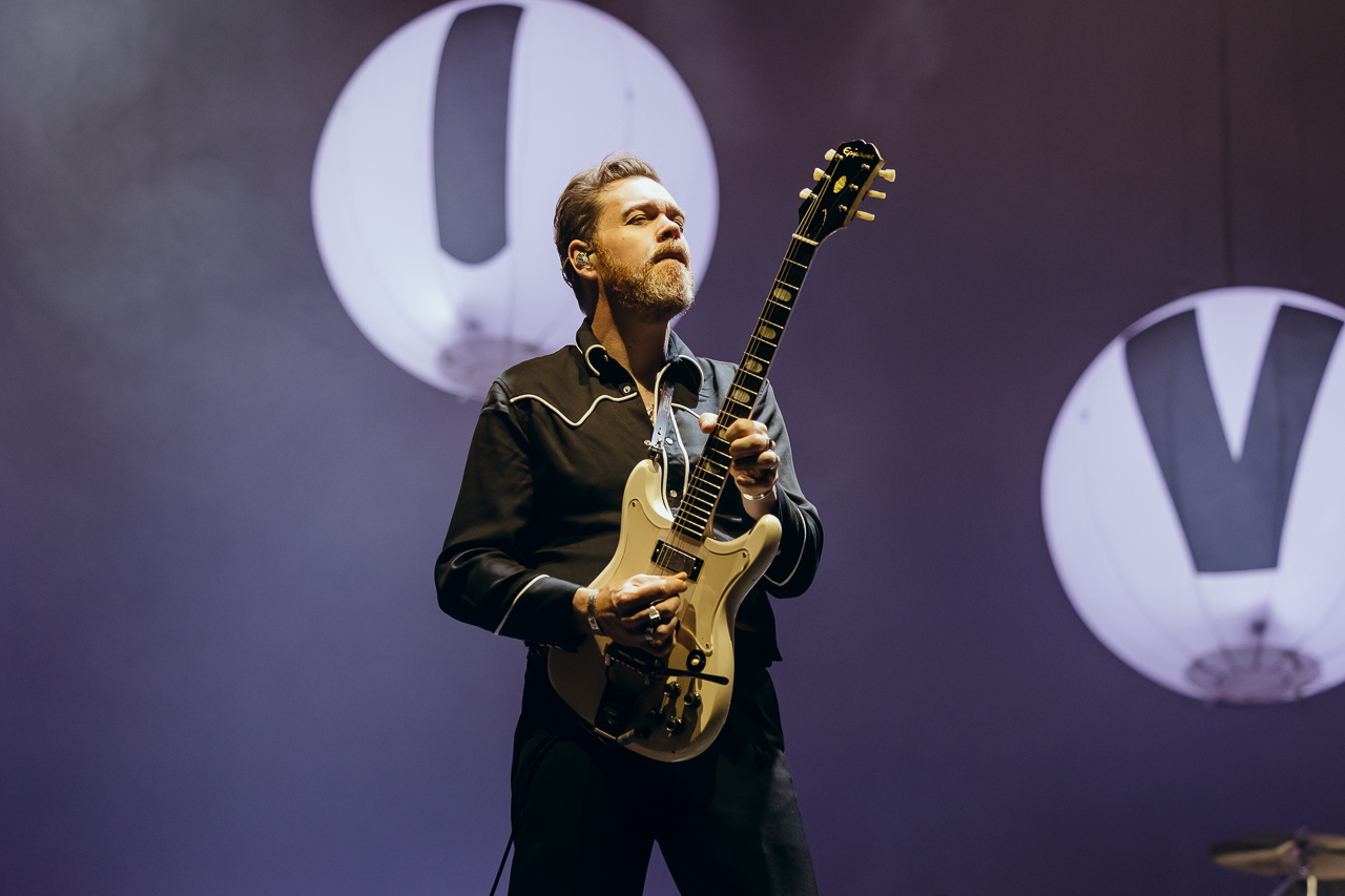 For their Alexandra Palace debut, the historic venue was reclaimed as “Ally Pelle”. No introduction necessary, The Hives began with a metronomic countdown in pitch black. 2025 single Enough is Enough kicked off the set and encapsulated the anarchic evening ahead. Fan-favourites from their extensive back catalogue – such as Hate to Say I Told You So and Bogus Operandi – likewise prompted acoustic renditions from the audience. Display screens on either side of the stage provided close-ups of each band member and occasionally showed footage of the crowd, which created a surprisingly informal mood. Acutely aware of their cult status, the five stood still in their trademark black-and-white LED suits and absorbed the applause after Paint a Picture.