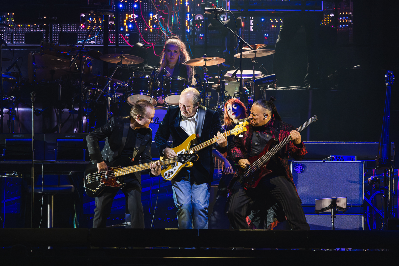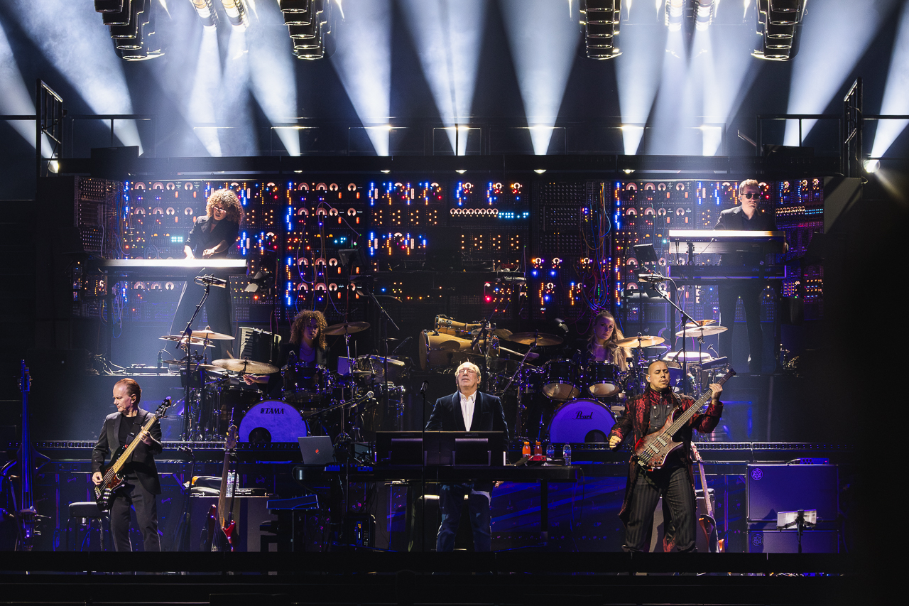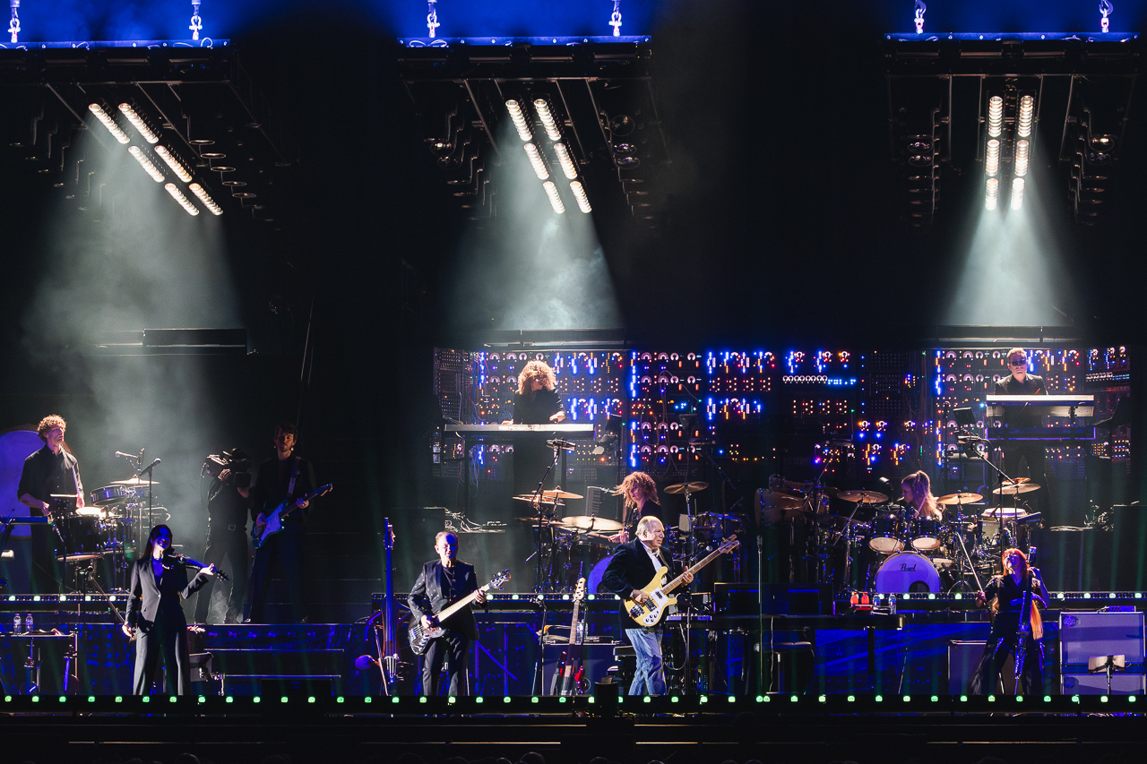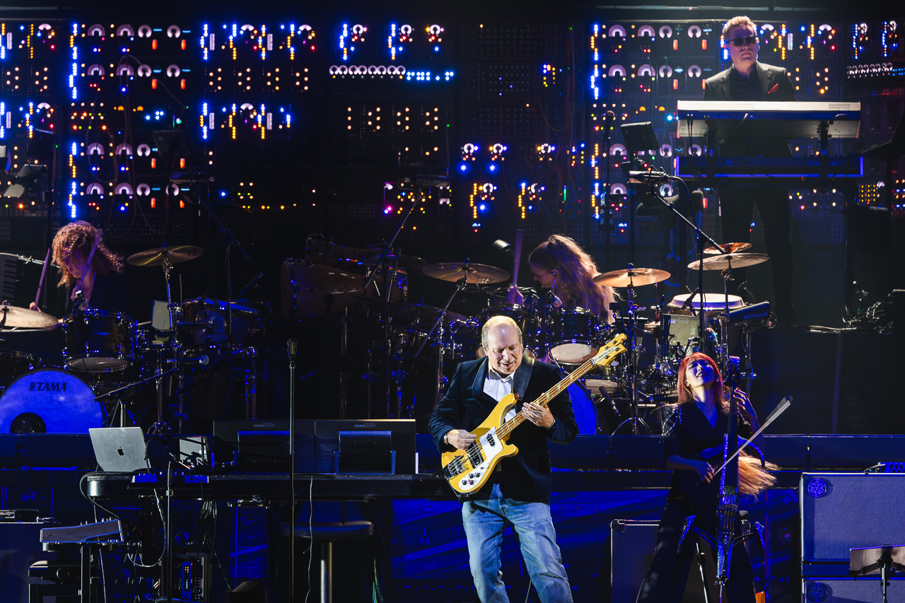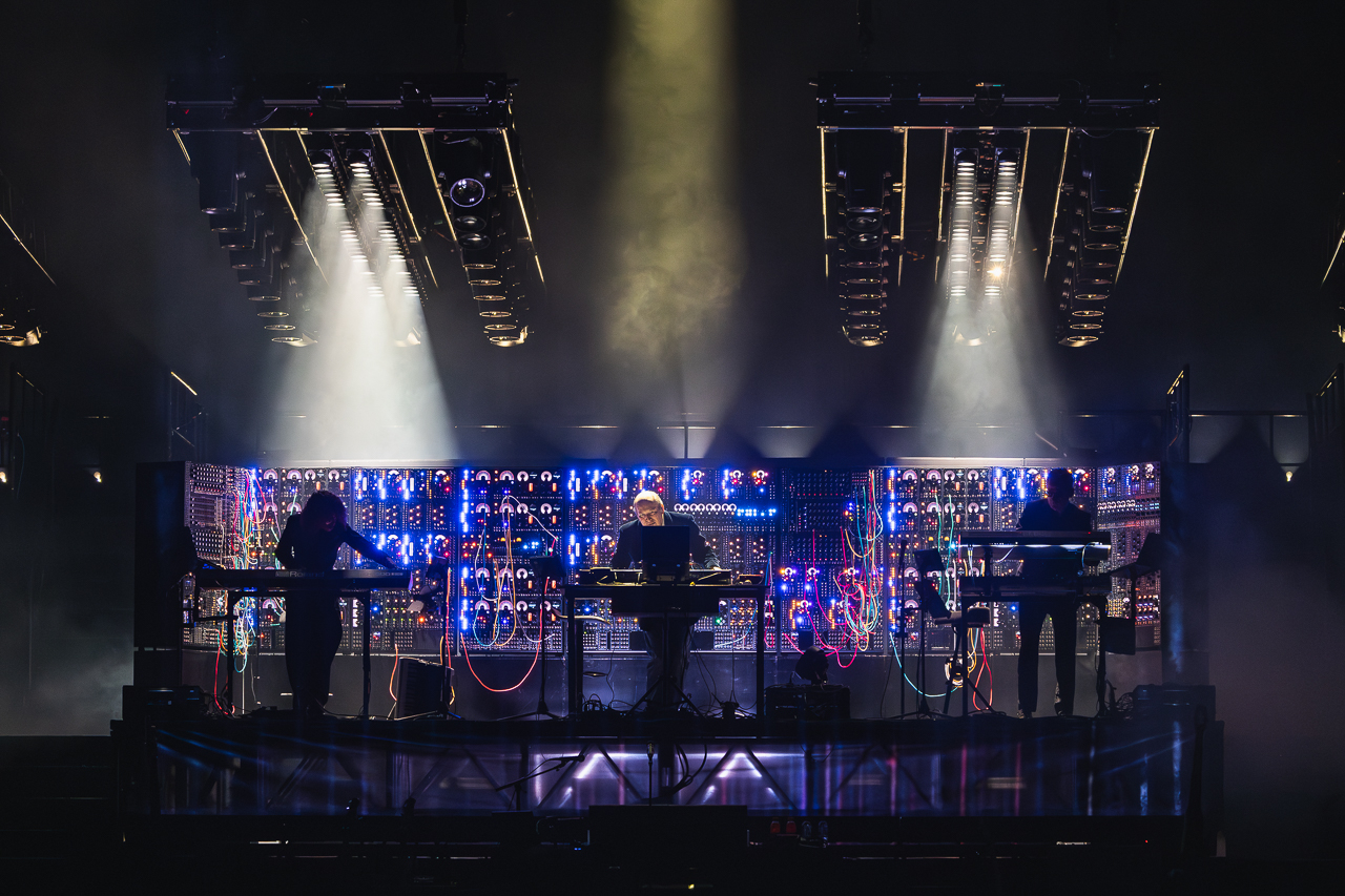 The sold-out show begins with a crackling thunderstorm sound as the arena is swallowed in darkness. A wall of analogue consoles glows faintly, like the bridge of a submarine. Zimmer emerges at a synth for the Dark Knight opener, then bounces between bass guitar, a mini-keyboard and a sprawling studio console.