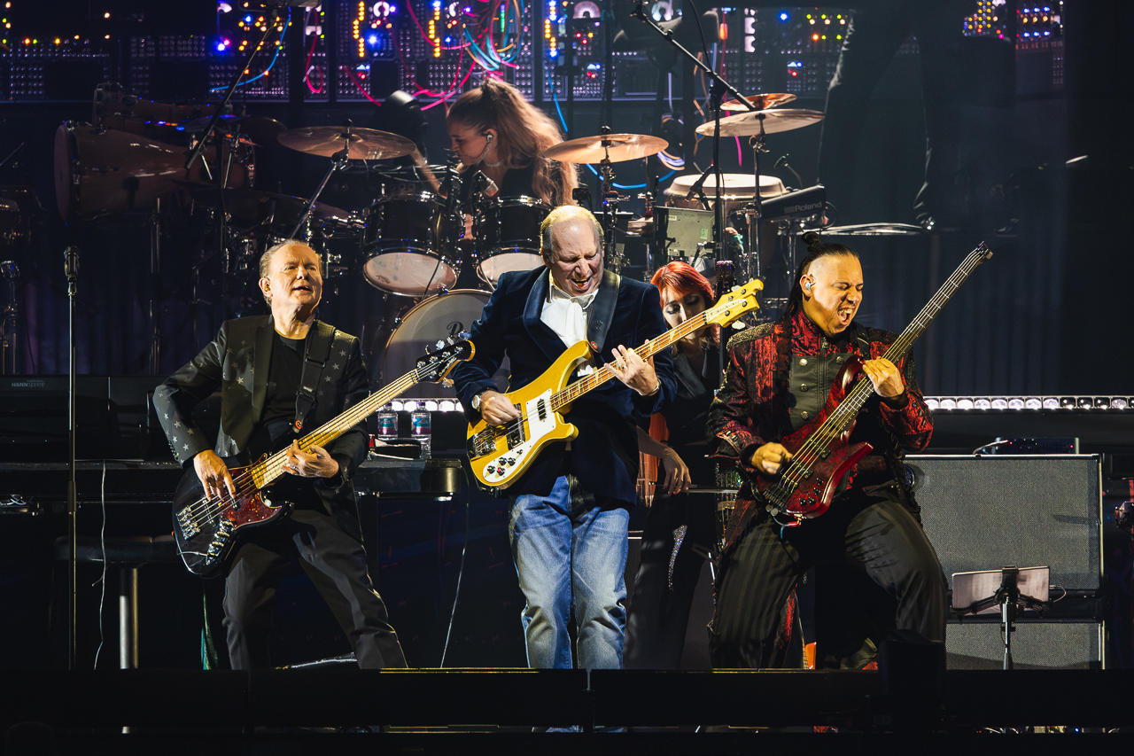 Throughout, Zimmer can’t help but praise his musicians, starting with his longtime guitarist Guthrie Govan, who “plays something completely different every night after 250 shows”, or the violinist Molly Rogers who joins the stage despite having a fever.