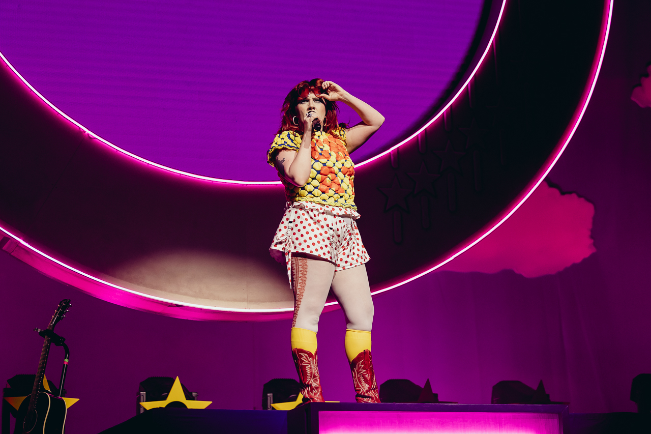 With her incredible songwriting, undeniable charm and heavenly vocals, how could you not fall for CMAT? Tonight, among everything else, she described a song as a tit-slapper, wiggled her bum at the crowd, and sprawled her body down the stairs while singing.