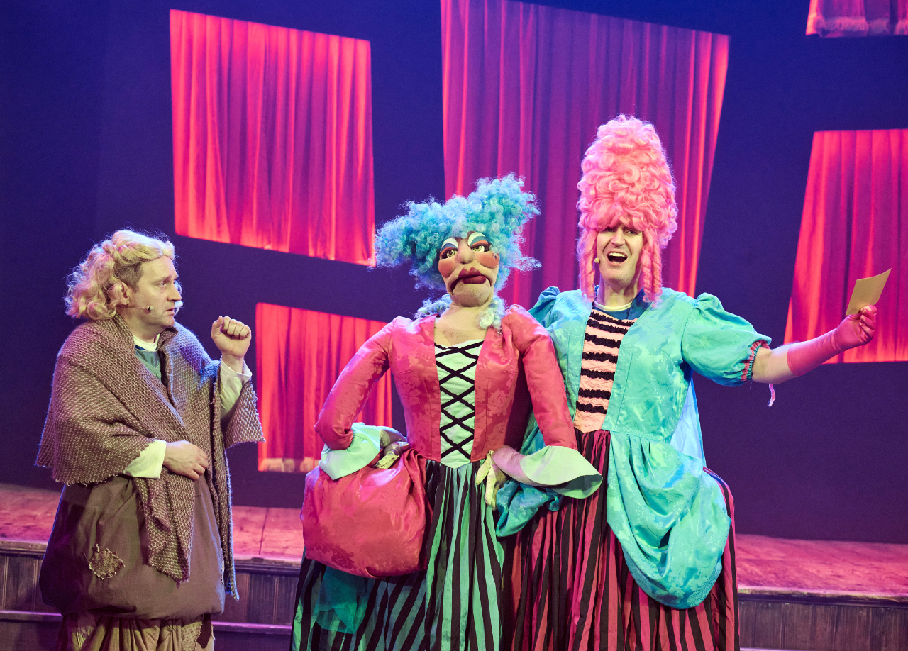 Potted Panto is a quirky pantomime remix brought to Wilton’s Music Hall by director Richard Hurst. The show unfolds on a minimal stage with windows, a door and a chest, and is led by the Ant and Dec-like duo Daniel Clarkson and Gary Trainor. Simon Scullion’s oversized storybook, which the pair read from, is a brilliant touch and underscores the exaggerated world they create.