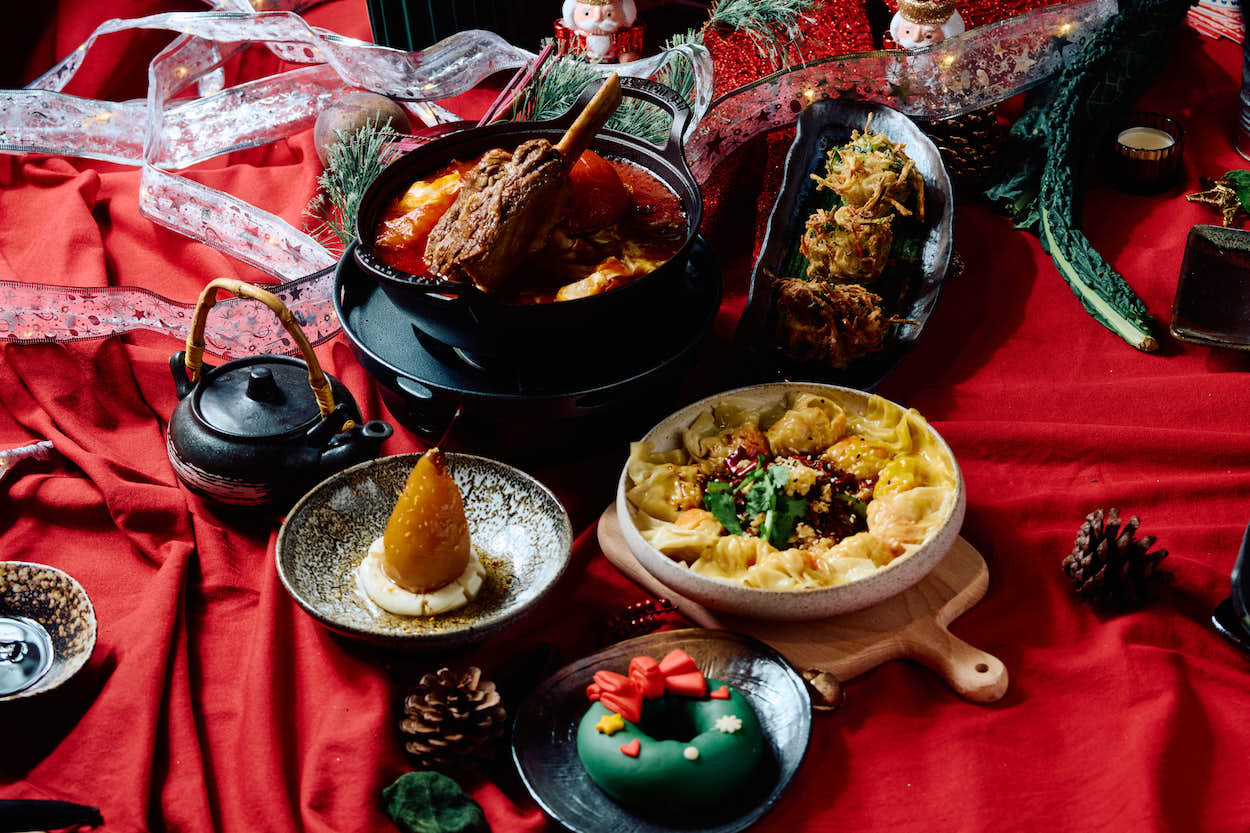 The festive menu includes four traditional Chinese dishes that reflect Wenjun’s childhood experiences with family cooking. Among them is a dish of Deep-fried Shredded Radish Balls, a popular holiday snack in parts of China, enjoyed particularly for its crisp exterior and soft interior. Another dish featured is Prawn and Fish Roe Wontons dressed in a house dry-mix sauce, topped with chilli oil, and accompanied by pickled Bean sprouts. A standout item on the menu is a clay pot of Braised Beef Short Ribs cooked with tomato and sweet cabbage. This dish is inspired by Wenjun’s grandfather’s winter stews and combines elements of Northeastern Chinese cooking with Western-style slow braising. Rounding out the menu is a dessert of Osmanthus-stewed Pear, served with cream cheese and jelly – a nod to traditional iced fruits left to freeze outdoors during cold winters.