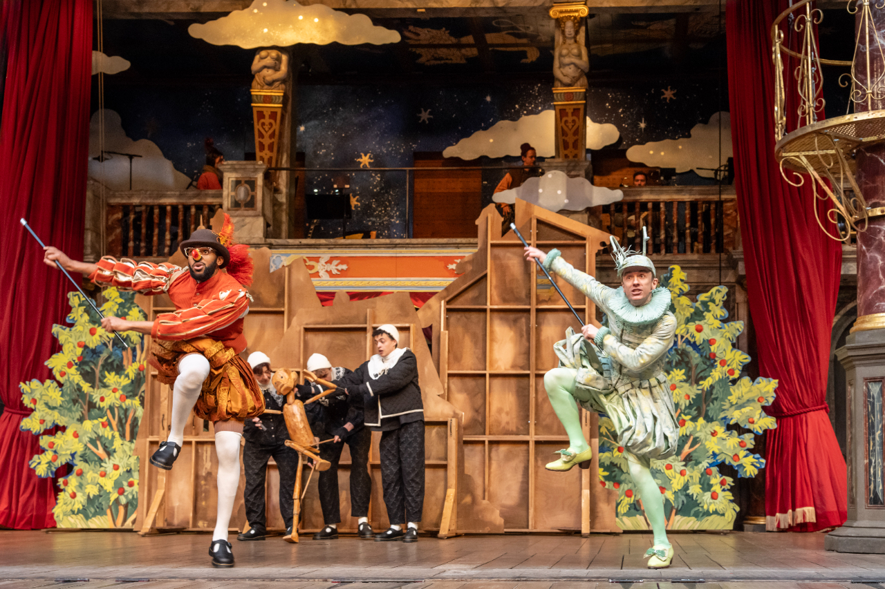 But there are delights for adults too. Alongside cheering on Holder’s insecure underdog as he blunders through the travails of unexpected fatherhood, Josephine and Fortune’s script revels in jabbing at the story’s famous retellings (such as Steven Webb’s camp, pointedly renamed “Giacomo” Cricket and Lucy McCormick’s depressively “Blue” Fairy) and the Globe setting itself. Ed Gaughan’s shabby showman, Franzini, is a particular naughty pleasure when he adlibs about middle-class audiences and other West End theatres. Yet, the play isn’t all jokes and sentimental songs about blueprints for life and love. There are a few shocking moments on Pinocchio’s journey, although this darker edge isn’t permitted to linger long.