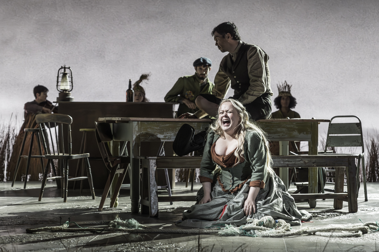 Katie Davenport’s set and costume design effectively immerse us in the world, though perhaps a bit too well, as we never leave the pub walls, the fire burning throughout like a constant reminder of the confined, simmering tensions.