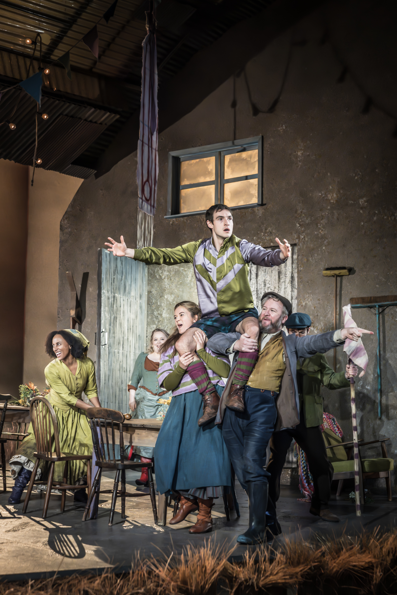 Originally met with huge backlash during its 1907 Abbey Theatre premiere for its raucous portrayal of rural Irish life and its glamourisation of criminal behaviour, John Millington Synge’s play is, at its core, a comedy – albeit one peppered with drama and flashes of sincerity. Caitríona McLaughlin’s direction leans into those undercurrents of vulnerability, fear, exclusion and longing that simmer beneath the characters. We see this most in Peegan, who tells Christy their meeting is something of a miracle, revealing a genuine desire for connection. Yet that openness is only briefly explored, leaving a desire for a deeper sense of Peegan’s needs and motivations, not entirely convinced that someone as intelligent and strong-willed as her would fall for Christy’s juvenile bravado, despite Hardwicke’s impressive performance.