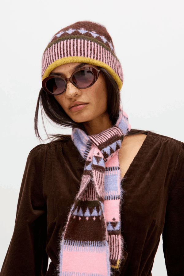 Brown Fair Isle knitted beanie, £28, Oliver Bonas
