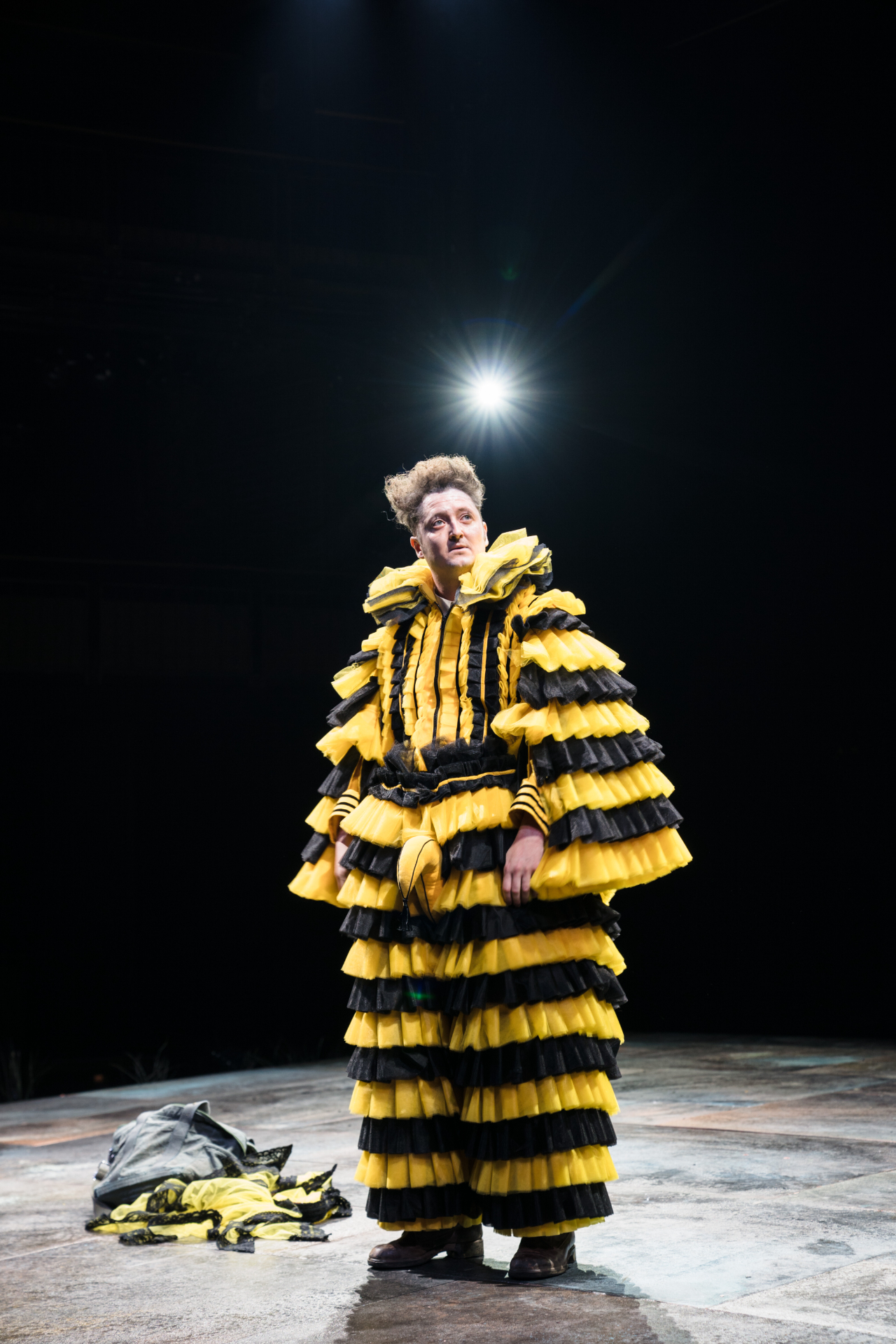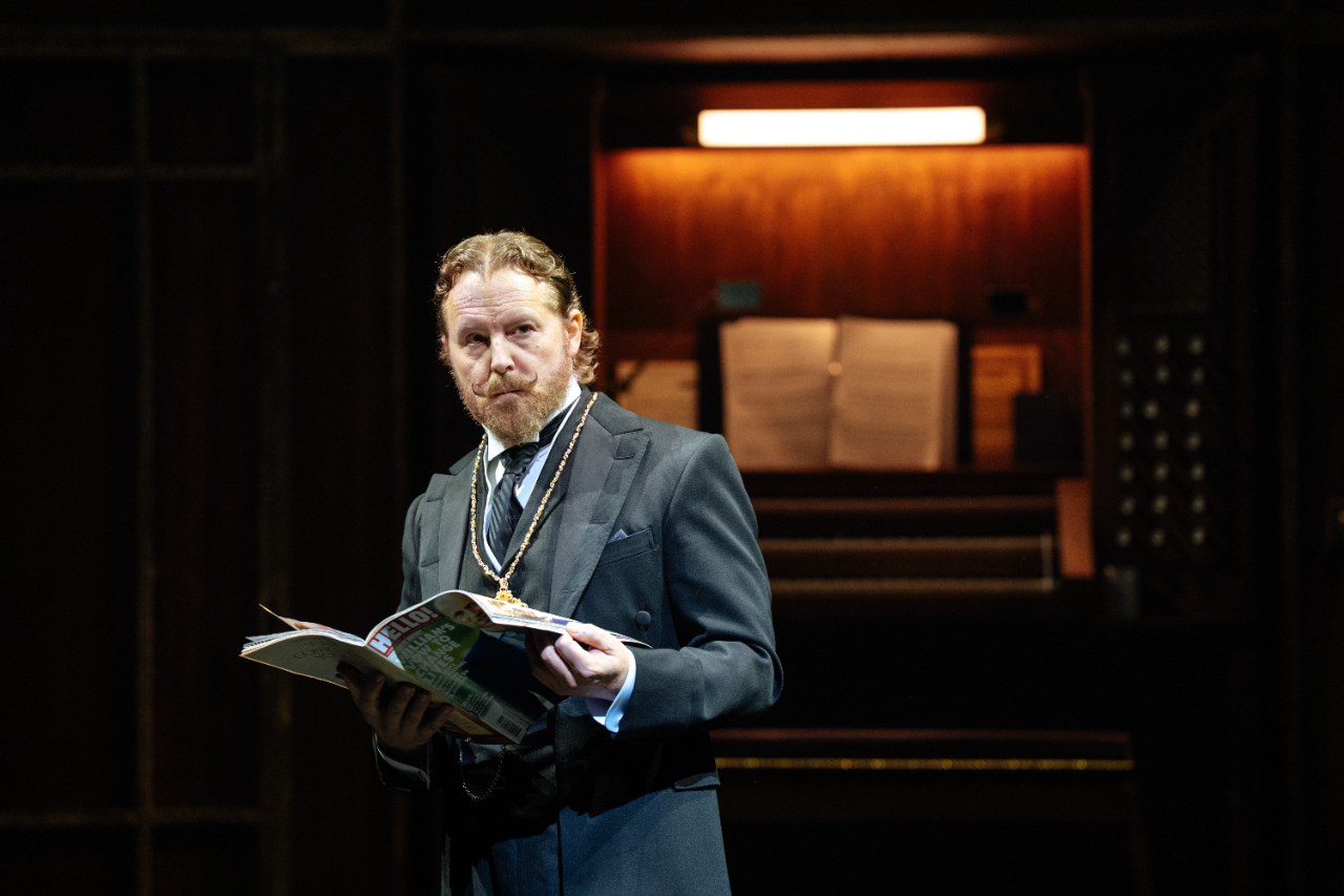 As Feste, fool to the countess Olivia and fourth wall buster in chief of Shakespeare’s immortal farce of identity confusion, Michael Grady-Hall enters in about as extravagant a fashion as one would wish. A cable-bound crooner in a shock of pale face paint, Hall is suspended far above the stage to deliver a plaintive little tune (one of a handful provided by singer-songwriter Matt Maltese) before being promptly ordered away. It’s the kind of appetiser that stretches a production’s tone taut, braced for a comic release that, for the next 175 minutes (factoring in the intermission), will prove more elusive than may be expected of what’s been billed as a festive revival of a much-loved production of the Bard’s romantic comedy, the queerest and most oft-colourfully interpreted in his arsenal.