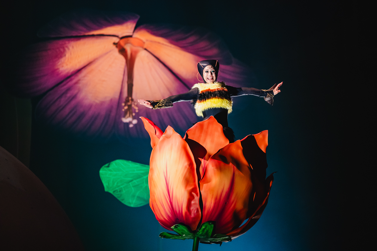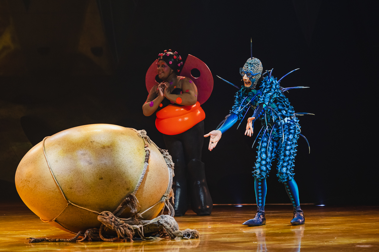 The clowns are genuinely very funny. The Voyager Fly tries to woo the Ladybug and keeps failing to hilarious effect. Their bug-like chirps and whistles are expertly spoken and almost hypnotic, cleverly playing out a recognisable dialogue without the need for a recognisable language.