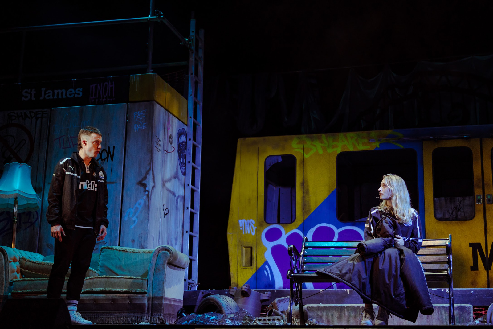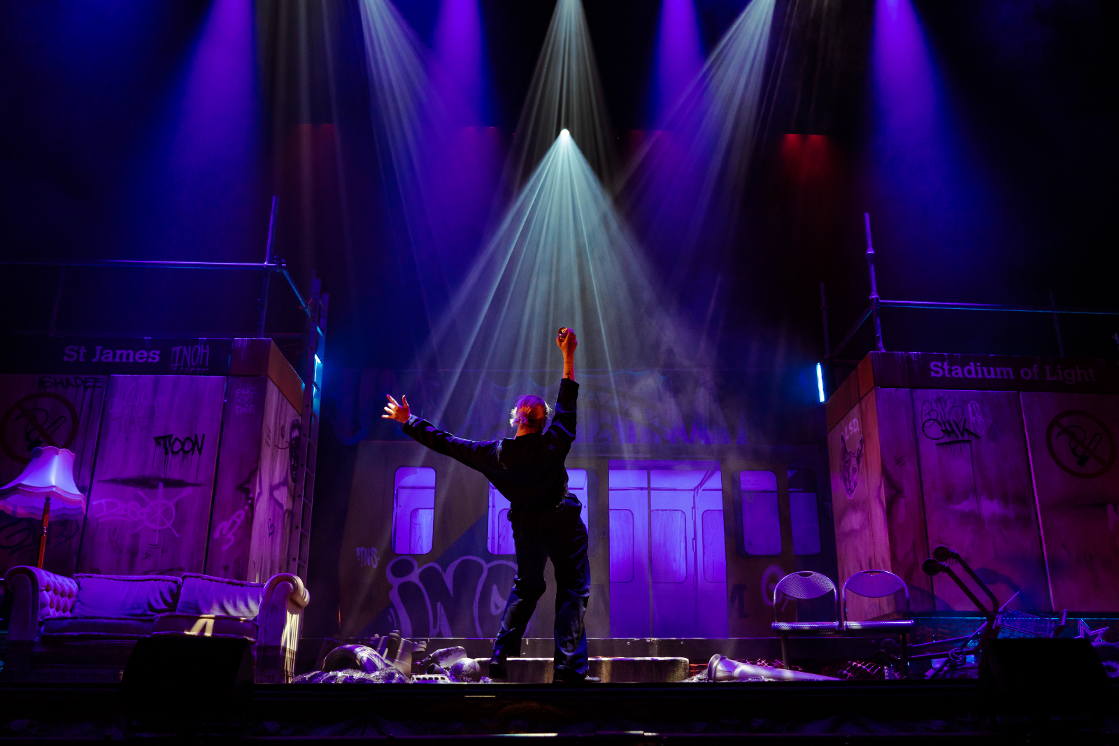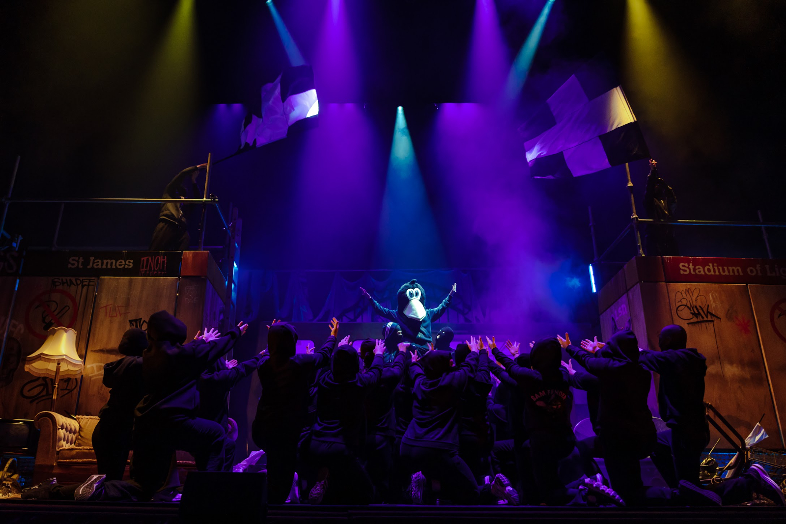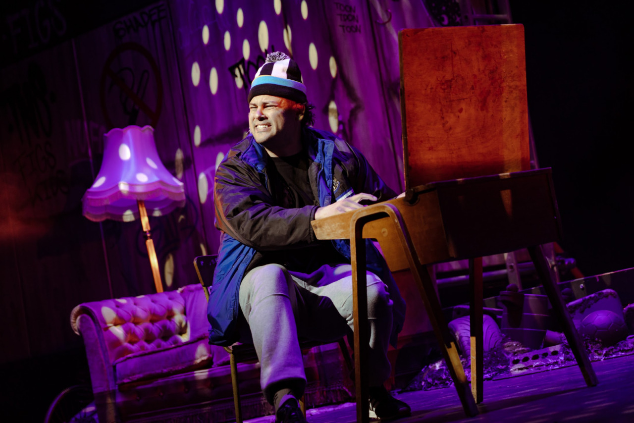 The play itself, penned by Olivier Award winner Jamie Eastlake, is funny and often poignant, though oddly complex and unsettled with no shortage of loose ends, with that tried and tested trope of the sharp-witted (smaller) gentlemen paired with the (larger) fellow of more simple intellect – reminiscent of Steinbeck’s George and Lennie – employed to the full. The comedy largely lands, especially the brilliantly jarring fourth-wall breaks, some decent slapstick, as well as accomplished and amusing puppetry, though one or two surreal and unfathomable characters were reminiscent of the inane imaginations of a school drama lesson. The themes of togetherness and camaraderie, along with toxic masculinity, all – happily or unhappily – integral to the football community, are explored to emotional effect, particularly in the show’s second half.