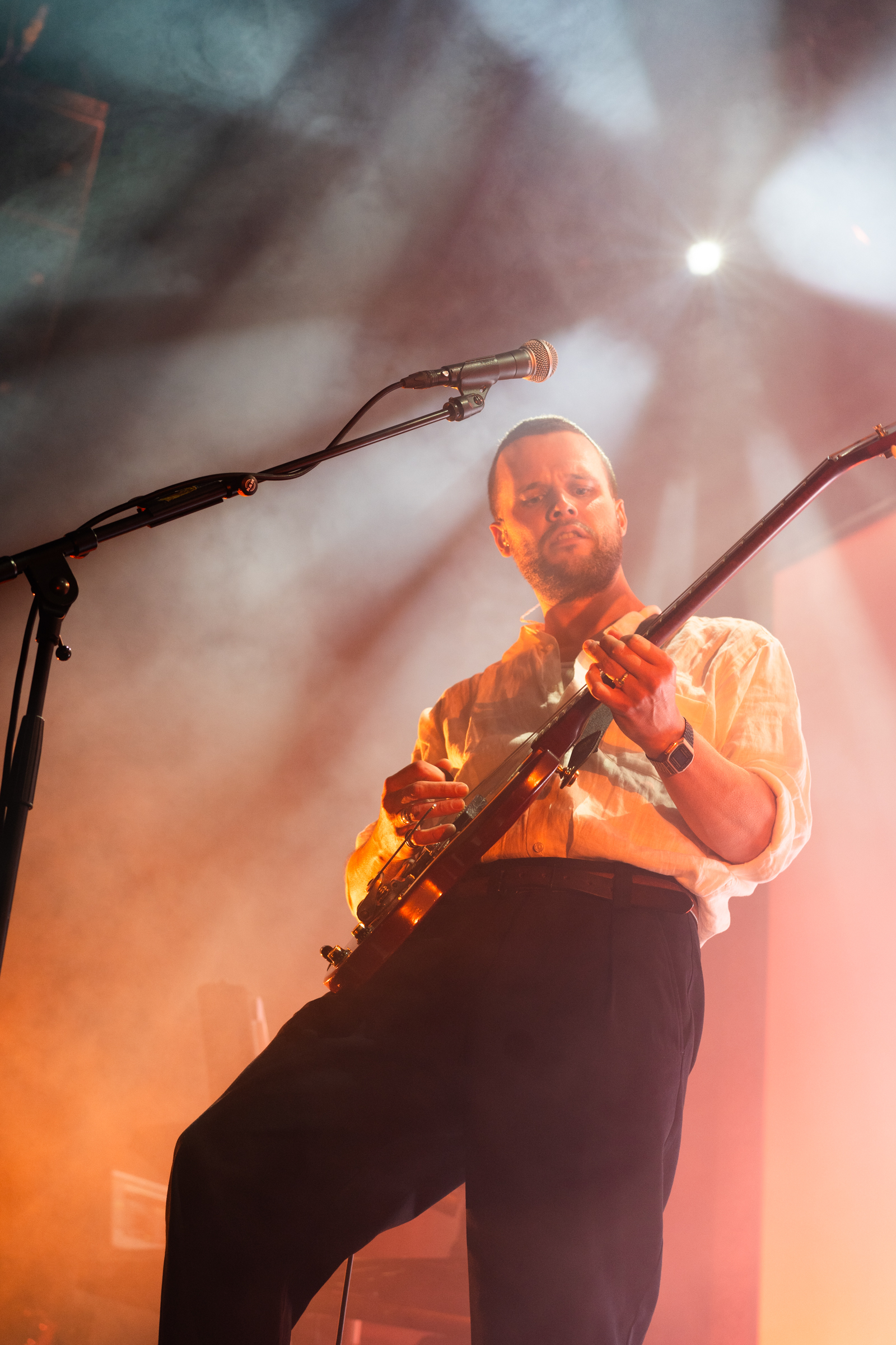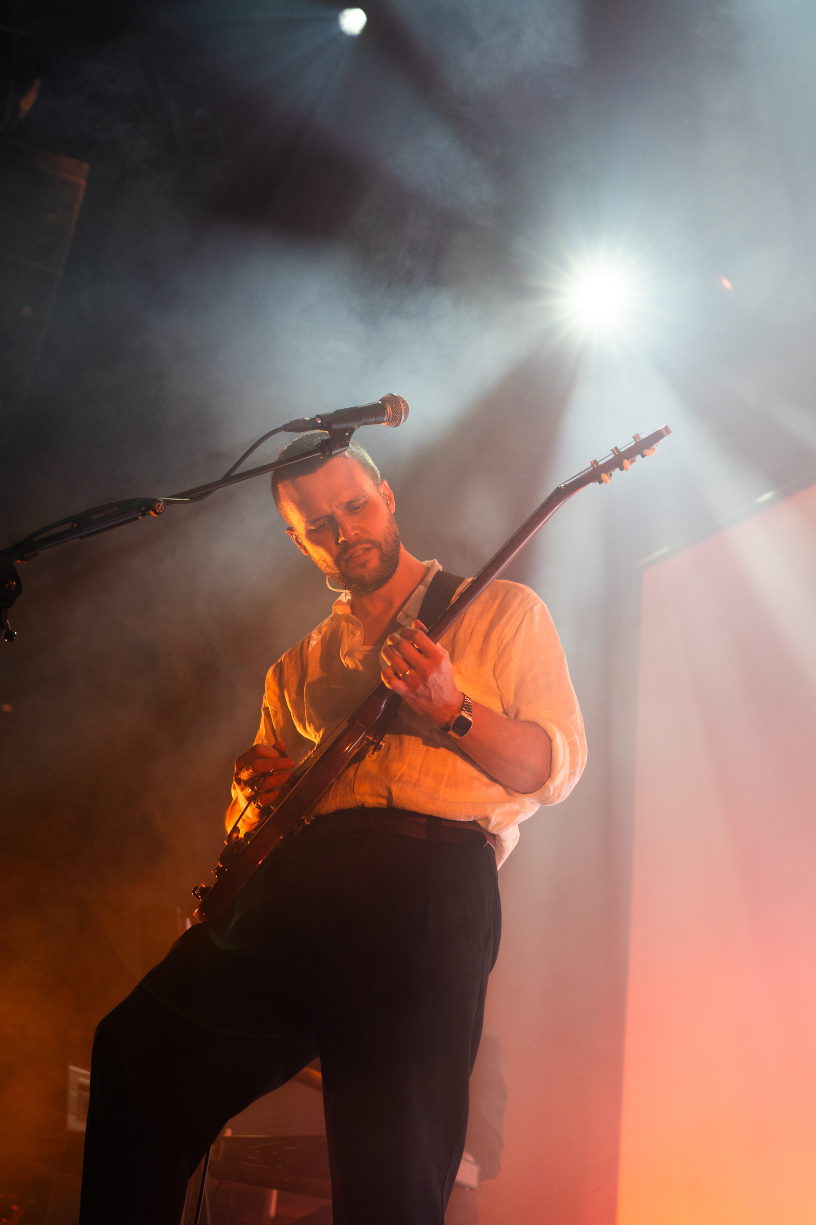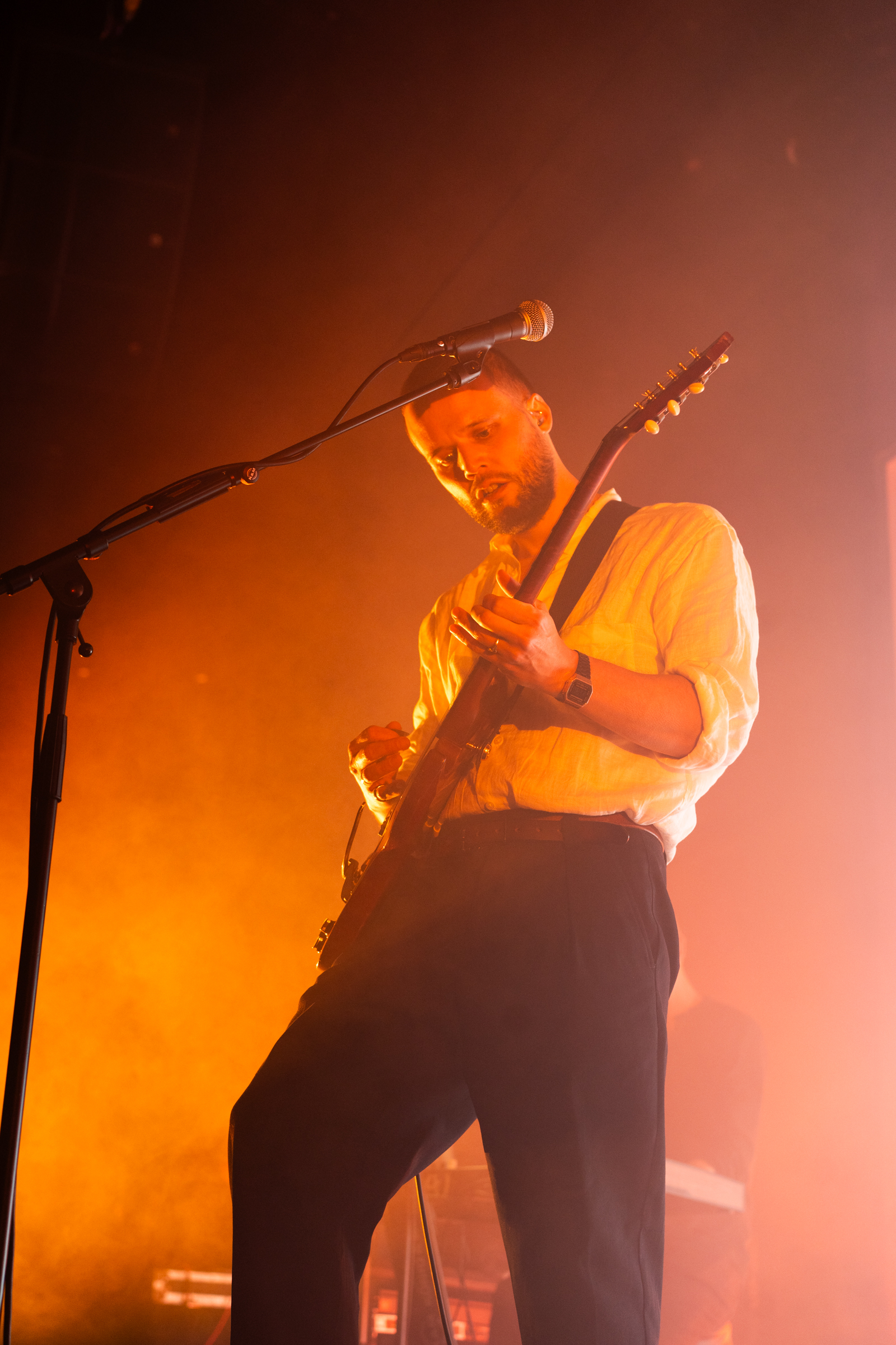 Opening with the shimmering notes of All the Best, the band starts strong, showcasing impressive vocals and striking guitar riffs that feel polished and vibrant. Farewell to the Fairground follows, a clear favourite that sends claps and cheers rippling through the Roundhouse. As the next songs play out, it’s obvious that the set is united by a bold, almost cinematic, synth-heavy sound that works well live.