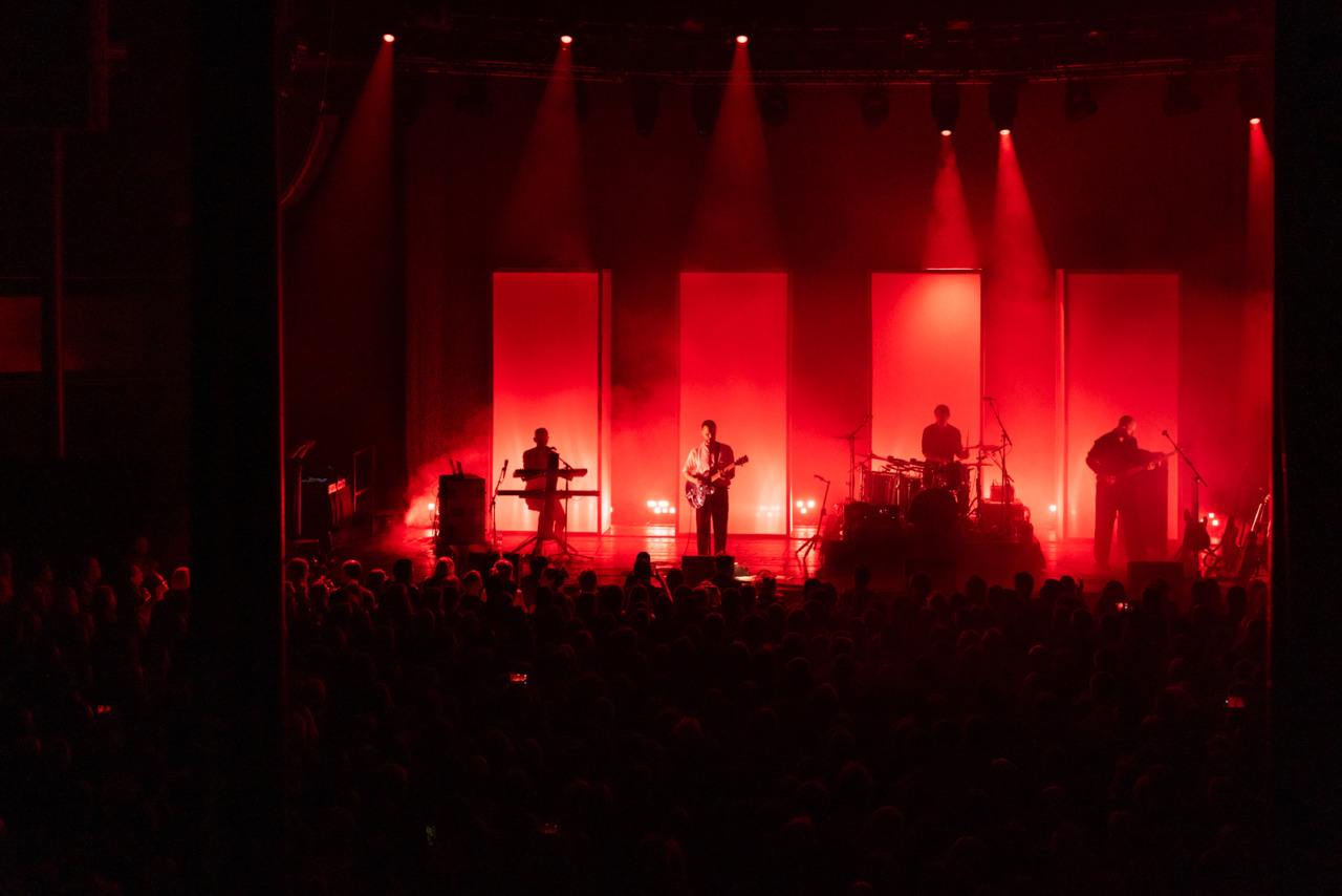 White Lies have returned to the Roundhouse for the first time in 13 years, in what lead singer Harry McVeigh describes as “a testament to how long we’ve been going”. On the first of two nights in Camden, a packed crowd of excited fans is ready for a show that spans their career, from classics to the new album Night Light, released late last year.