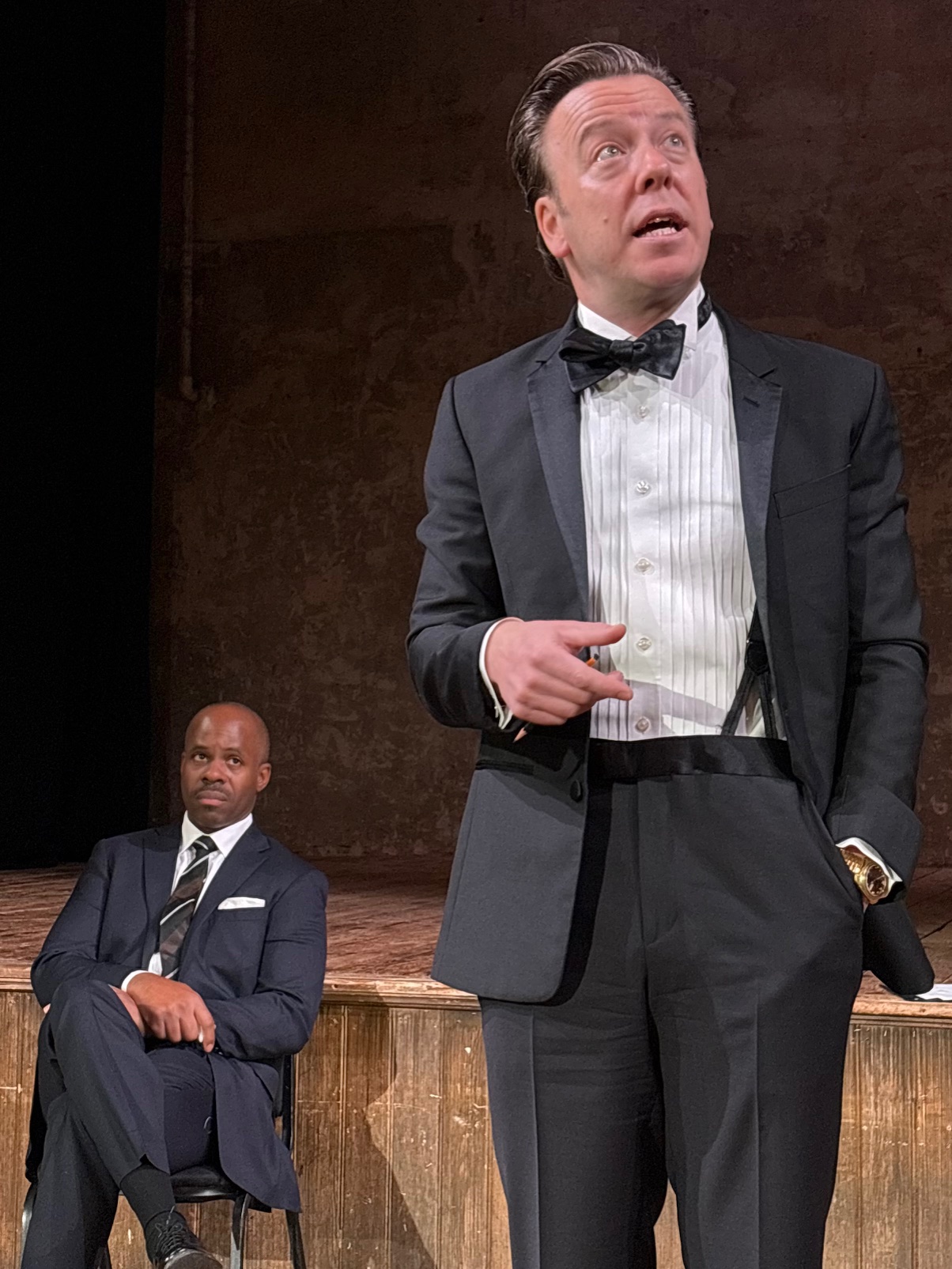 The motion of the evening is “The American Dream Is at the Expense of the American Negro”. After some opening remarks by undergraduates Haycock (Christopher Wareham) and Burford (Tom Kiteley), Baldwin (Arnell Powell) and Buckley (Eric Miller) have roughly 30 minutes each to present their arguments. What the audience receives is a clash of titans, which highlights the possibility of civilised debate. Both Powell and Miller are excellent in their portrayal of their characters, speaking fluidly, persuasively, and with a great deal of charm.
