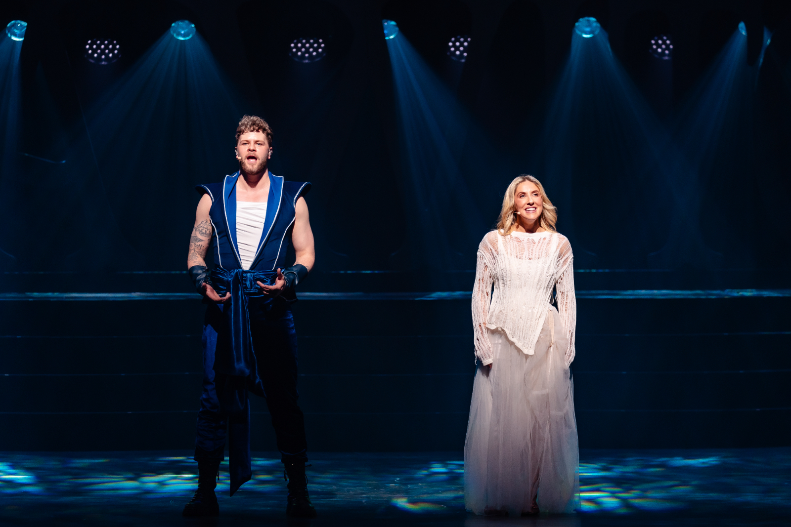 The book is probably the production’s most serious issue. Key relationships remain undeveloped, and plot threads are introduced only to be dropped. Entire sequences, however energetically choreographed by Dean Lee, fail to move the story forward and often seem completely out of place. All characters are frustratingly one-dimensional. Even when confronted with the revelation that her mother sacrificed herself for her, supposedly a life-changing moment, Evie barely pauses to take the information in. The emotional weight is bypassed almost entirely.