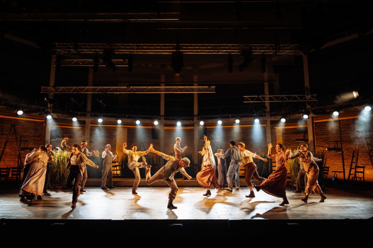 Alongside the lighting and the narrator, the choreography plays a large part in telling the story. It’s incredibly well put together with nothing more than the performers and a few basic props creating enchanting scenes. Some simple wood planks become tables, counters, doors, rail tracks and more as the cast flit around the stage in a mesmerising show of daily life.