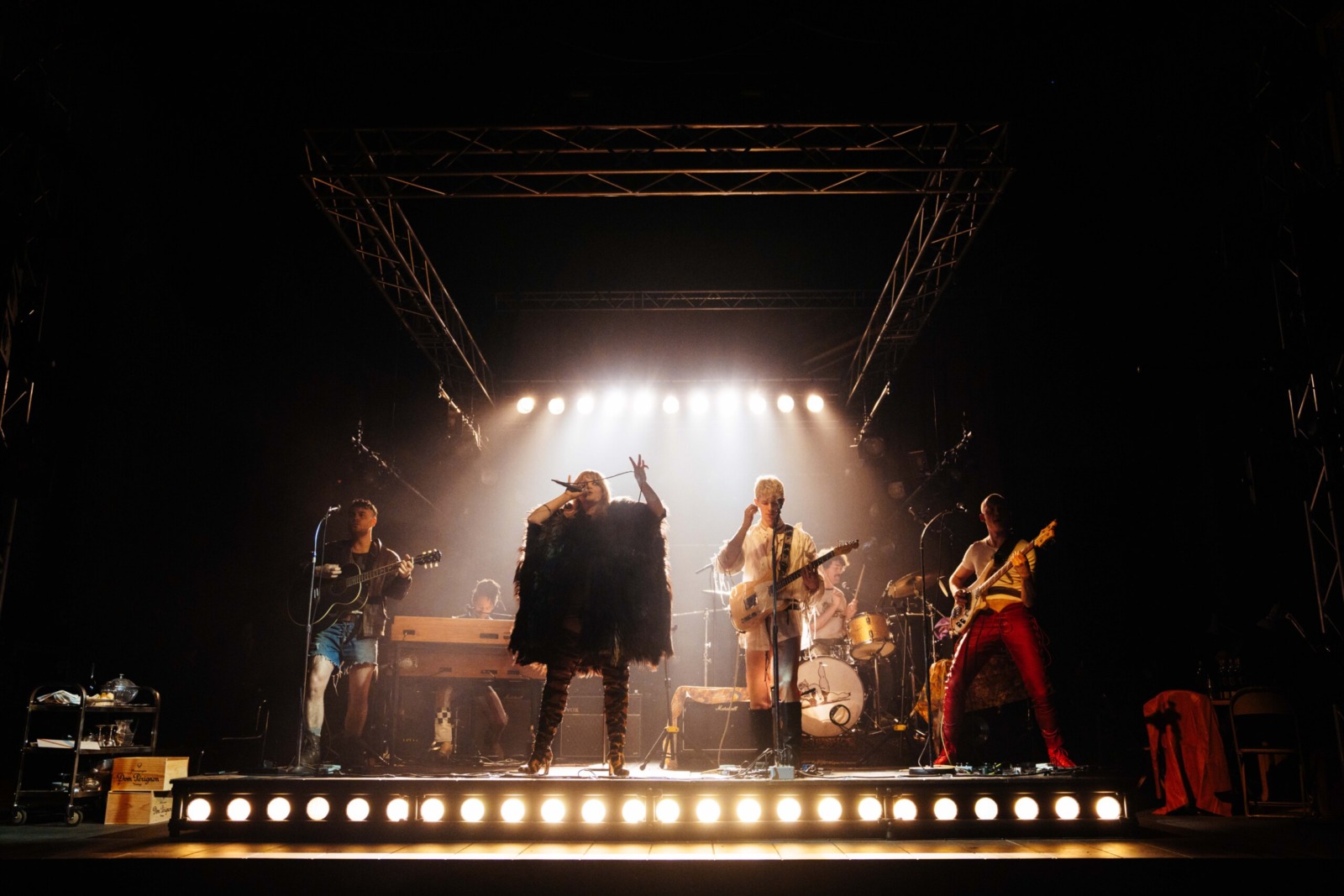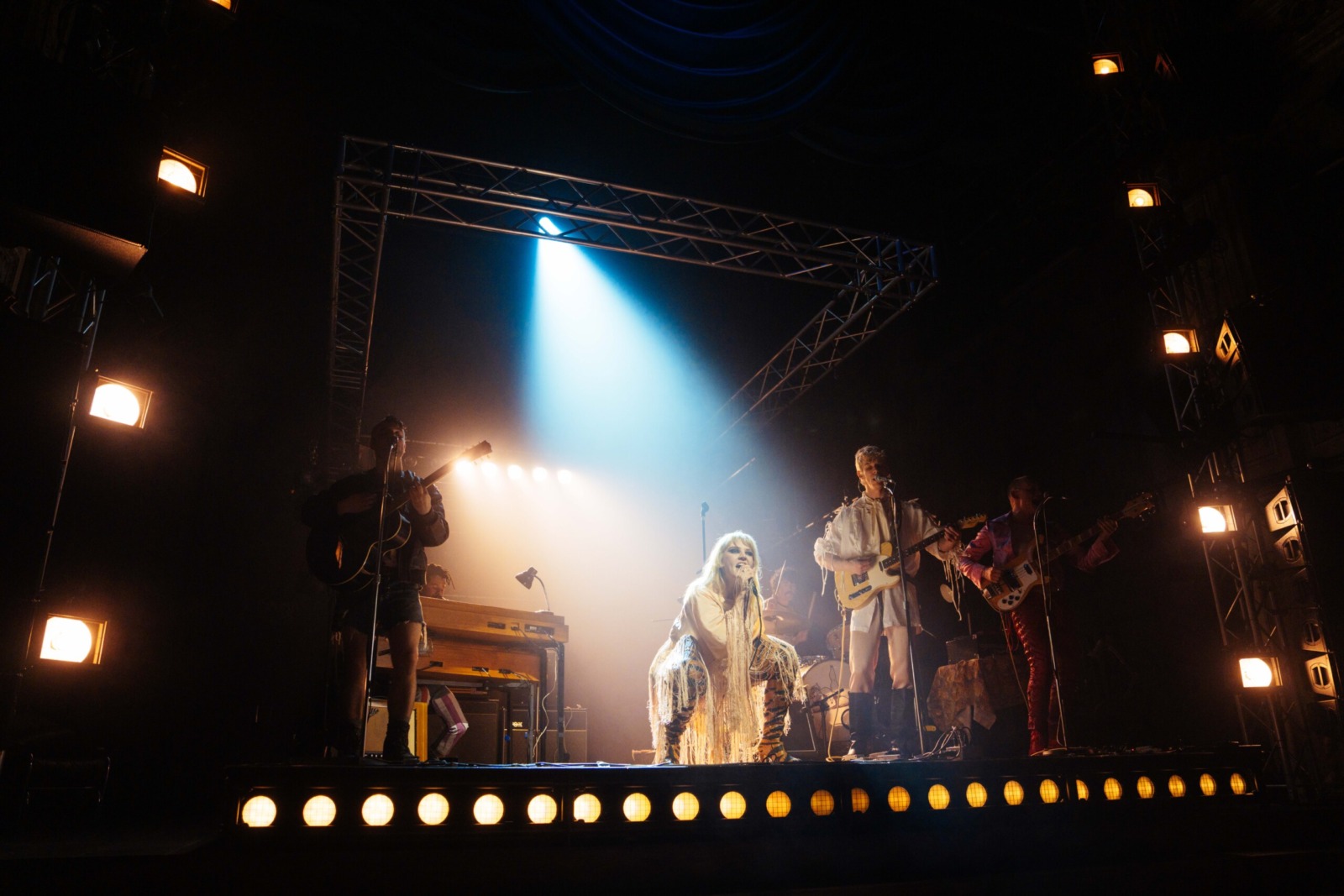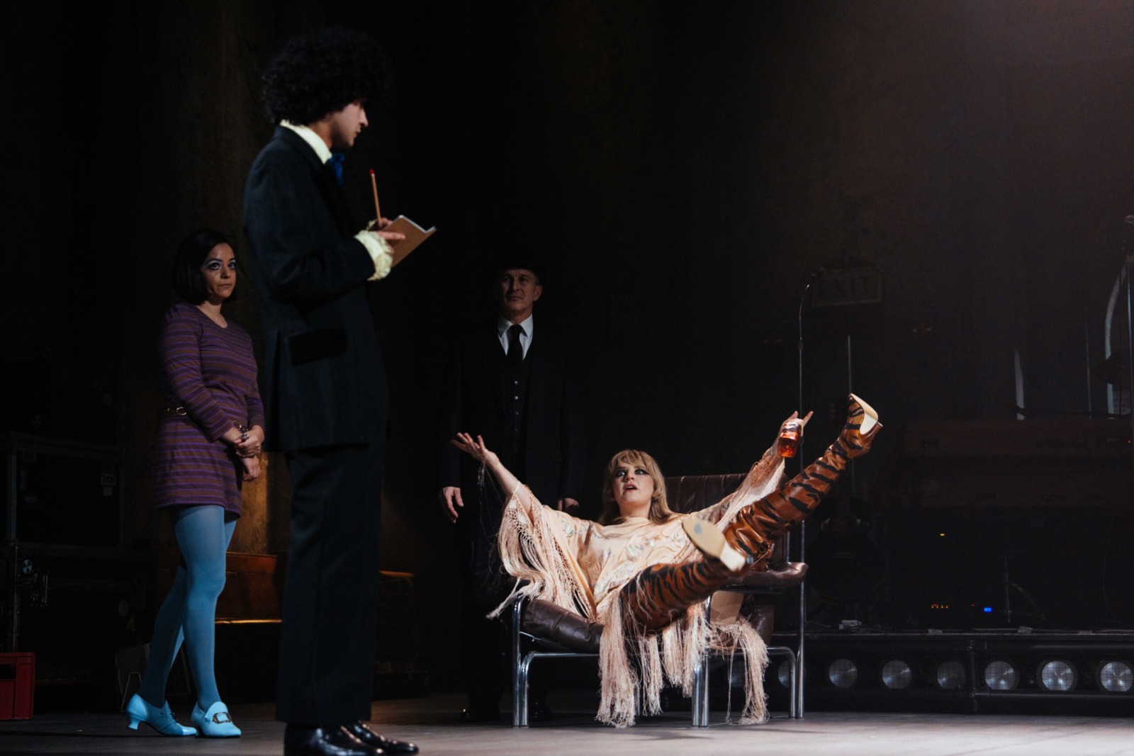 Taylor as Maggie is undeniably the headliner, yet some strong players remain among the rest of the cast. Phil Daniels’s blokey manager Saraffian is charming, ably shifting between retelling slightly-too-long war stories and cutting through the drama when needed. As it’s the late 60s, the band seemingly come together for three things: the songs, seeking their next hit – sexually or narcotically – and waiting around backstage; Jojo Macari as Peyote, the bass player, is the standout here (quite possibly more drugs than human), rattling around with his hilarious high-octane antics.