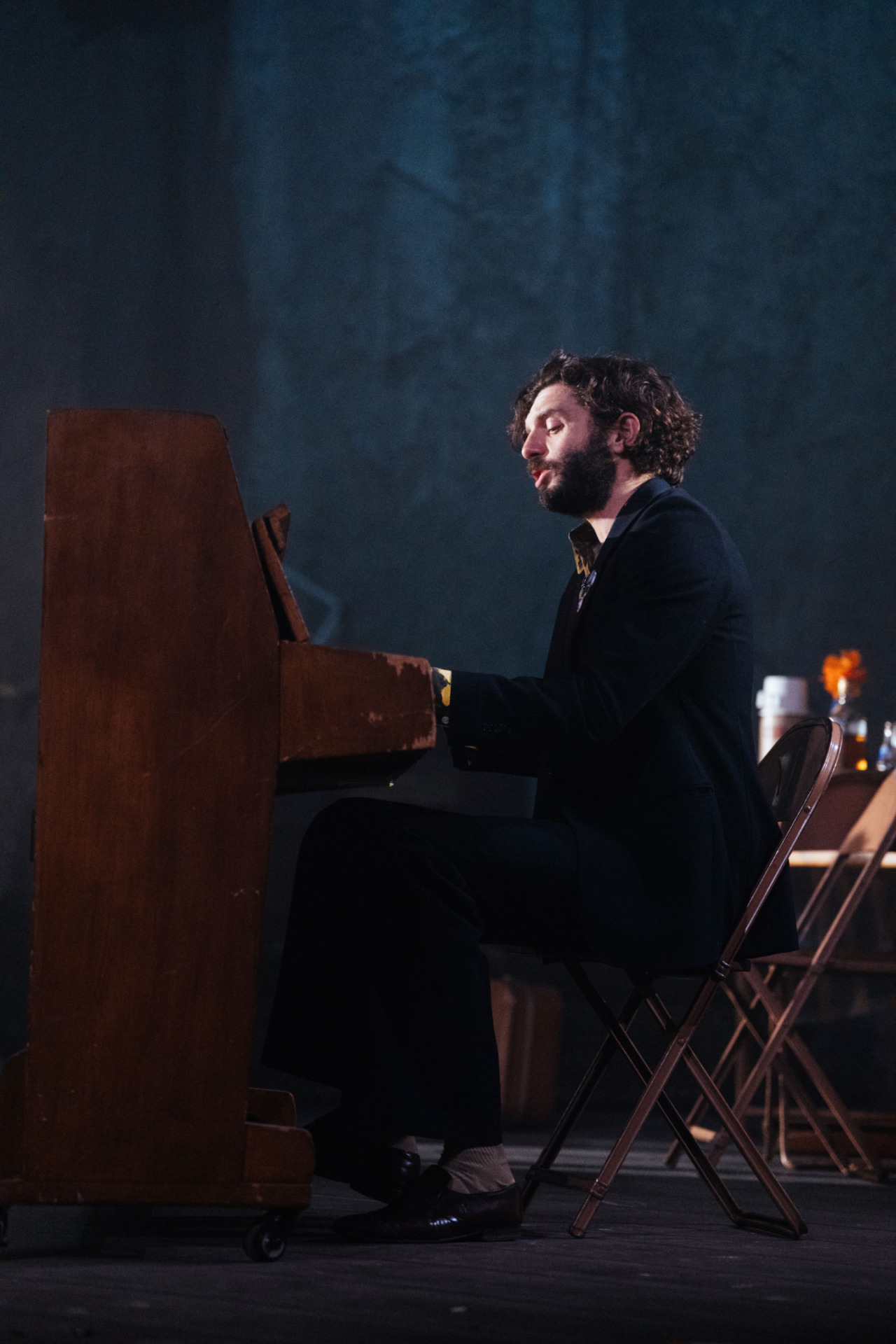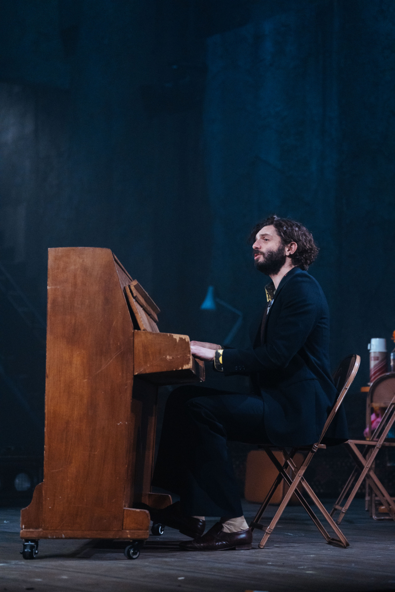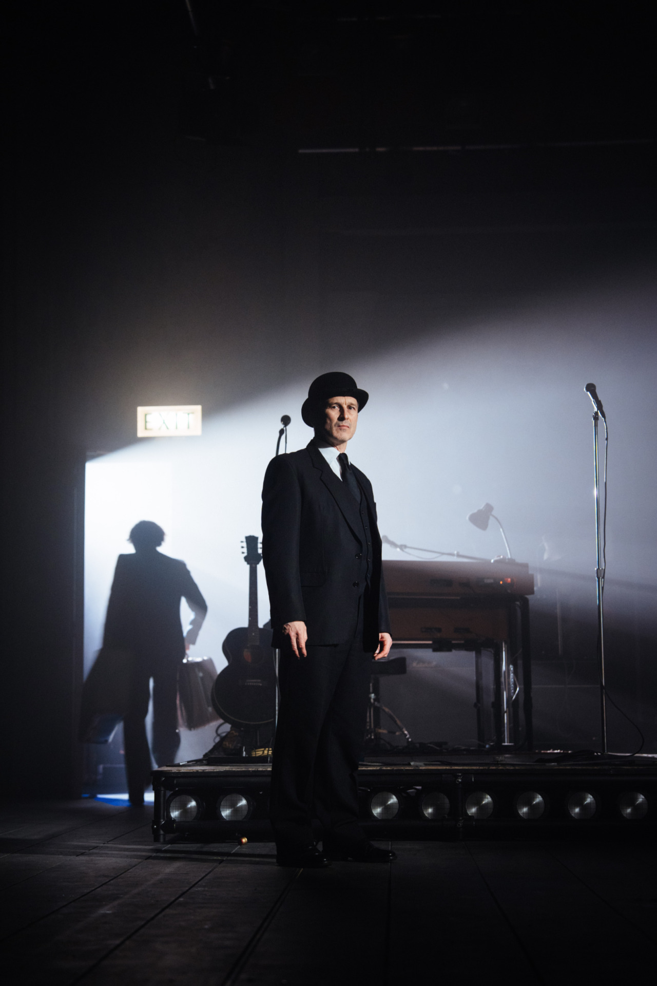 As for Nick and Tony Bicât’s songs, they excellently reflect the band’s conflicting identity as a 60s band looking towards the 70s (but might not get there) – highlights include Don’t Let The Bastards Come Near You and the glorious swansong Last Orders. Raggett’s direction has the cast bolting every which way as mayhem erupts, with the songs performed on a raised platform, and hazy stage lighting and orange lightbulbs adding to this setup of yesteryear. Throw in flames and an actual dog, and the suitably chaotic staging completes the image.