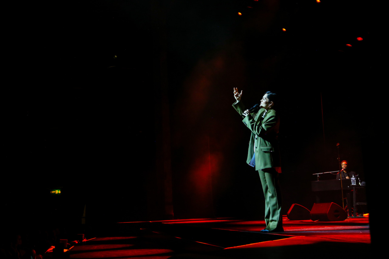 Musically, the setlist draws strength from reinvention. A slowed, jazz-influenced arrangement of Do It Like a Dude sets the pace early on. What is usually a gritty pop track is reimagined to echo sweetly through the walls of one of London’s most prestigious venues. No Secrets follows shortly after, punctuated with playful interludes – including an unexpected Oliver Twist impression – without losing its endearingly self-reflective essence. As the setlist ebbs and flows through the singer’s discography, there is a sense that any of the songs could unravel or expand at any moment, depending on her mood.