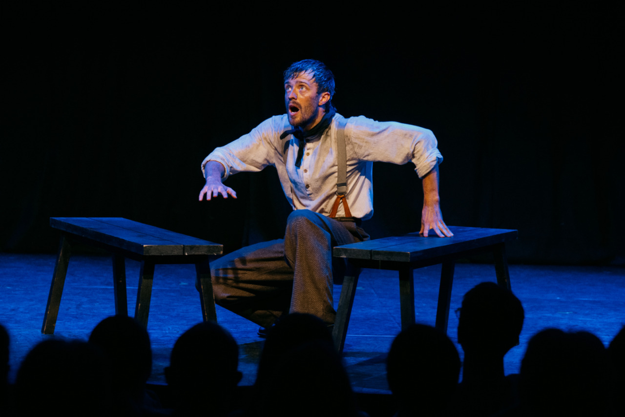 The immediacy of the first-person narrative is only enhanced by the choice to make Boiler Room Six a one-man show. Actor Charlie Sheepshanks gives an energetic and physical performance, flitting between accents to differentiate the characters. Mostly, though, he narrates as Fred, giving a running commentary on the unfolding action as well as an insight into the demons in Fred’s past.