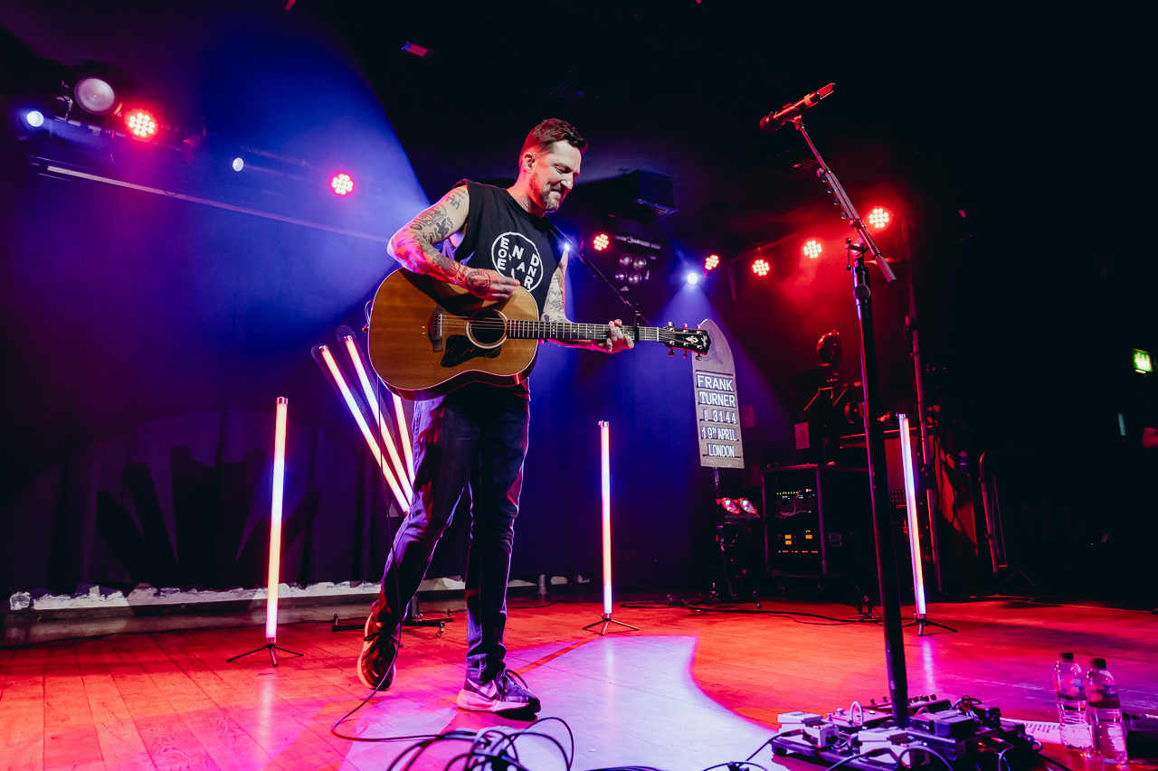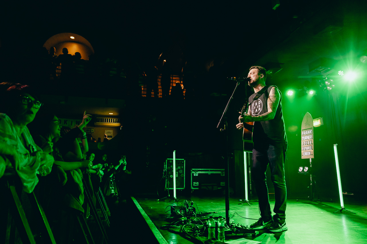 “Good evening, London!” he says after the defiant Do One. “My name is Frank Turner, and welcome to show number 3144!” Frequently addressing the crowd as “friends”, he happily tells stories from long ago and just recently as if he’s playing a folk evening in a smoky pub back room, rather than the near-1000-strong Scala audience. Turner notes that the number of people who came to the first solo UK tour he did in 2006, after the EP’s initial release, probably could fit in this room. It’s hard to believe, given there’s another show happening here tomorrow night, but everybody has to start somewhere.