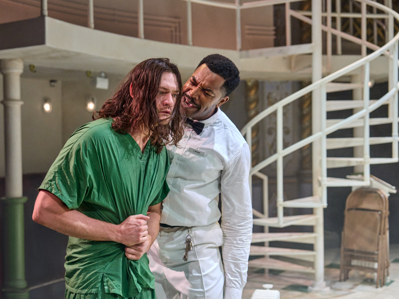 Though, as a whole, the show is a faithful revival of both a theatrical and cinematic classic, the narration of Chief Bromden feels underpowered. Many times, it’s difficult to decipher what story he is telling between scenes, and when it comes to the big reveal in his character arc, it leaves an almost muted impression, as the investment in the character is not quite there. Perhaps it is due to the fact that so much is going on in the round that you can’t quite focus on everything, but considering that this is his story to tell, it doesn’t quite provide the clarity needed for the audience to fully invest in him.