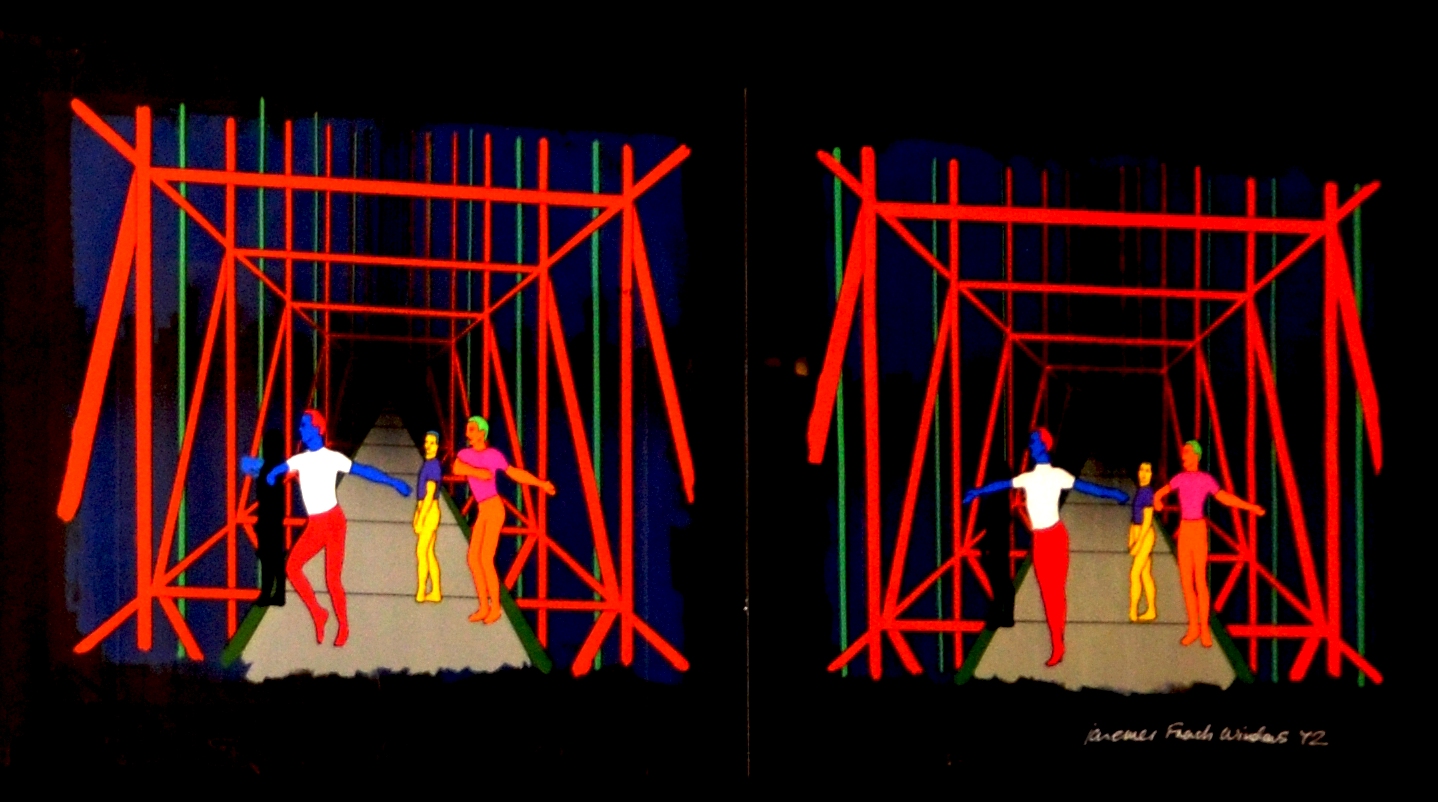 The opening on 1st March, combined projections of Emes’s animations, dim lighting and coloured spotlights. Original cells of some of the artist’s most famous works – from his early career, animating for the prolific live shows of Pink Floyd – filled the gallery, placed alongside hanging torches for close examination of the bold colours and dynamic shapes Emes is best known for. The exhibition also includes some more intimate insights, such as early preliminary sketches and notebooks.