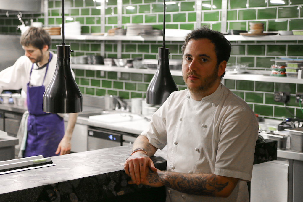 Last night chef Tom Sellers, the wunderkind behind the Michelin-starred Restaurant Story in Bermondsey, opened the highly anticipated Restaurant Ours in West London. Of its former site, The Collection, it retains the iconic 80-foot catwalk entrance designed by Lord Norman Foster and the massive two-storey dining area, which has now become one of the most stunning of its kind in London.