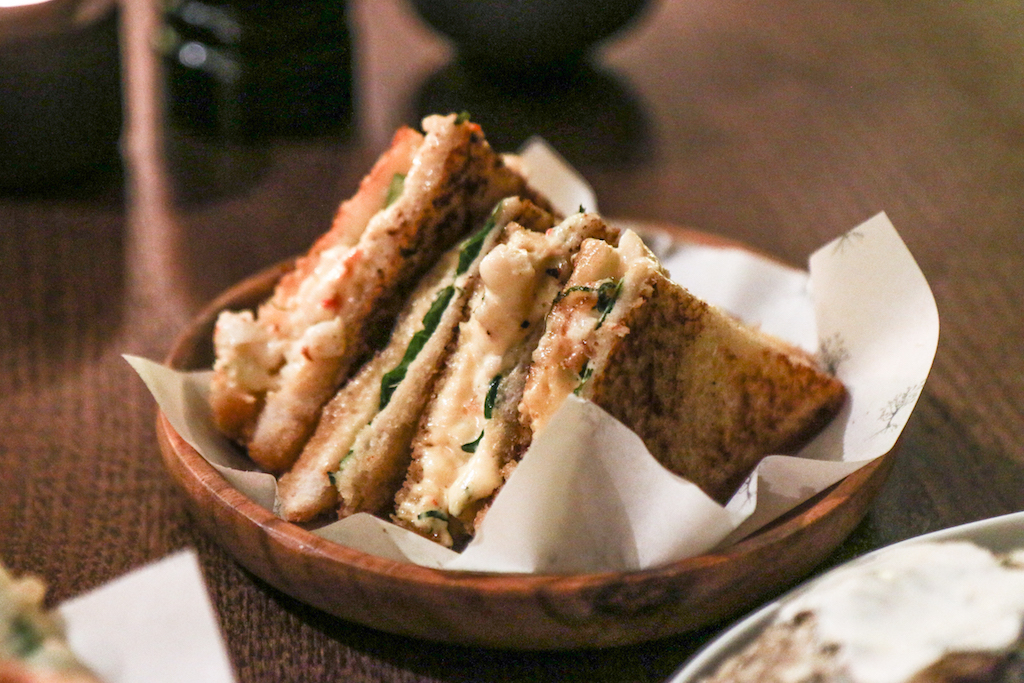 We try Oyster Tempura, Salt and Pepper Squid and Our Shrimp and Yuzu Toastie from the snacks. Both the oyster and the squid are fried impeccably – the tempura is airy and the squid has an ultra-light batter – and the delicate spiciness of the mignonette and sriracha sauces (for the oysters and squid, respectively) give them an irresistible touch. The toastie, which comes with the prefix “Our” that defines their signature dishes, is a more sophisticated version of a prawn-and-mayo toast but it would be better suited as a complement to a drink at the bar than as a pre-dinner snack.