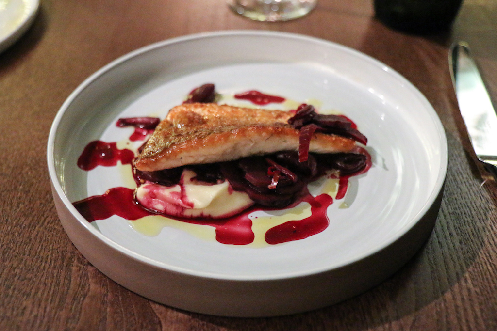The starters – which in my opinion is where you see the real creative flair of a chef – need at least three visits to satiate the curiosity. The Red Mullet Escabeche appeals to the eye and to the palate: the fish is cooked to perfection, the skin golden and crisp, the flesh moist and tender. On the other hand – or more specifically the other side of the table – the raw Scallop, Grapefruit, Pickles equals the former dish aesthetically but has two issues: it’s served in a non-declared chicken and smoked-bacon stock and it looks like it’s only a single scallop sliced into four pieces. However, it tastes extremely fresh and delicious.