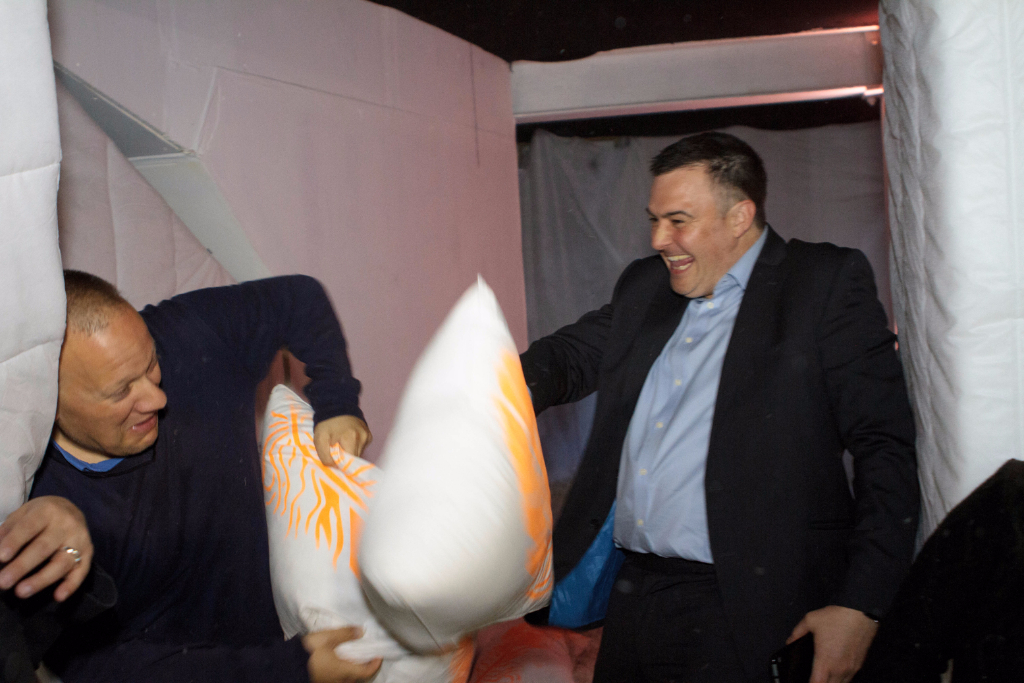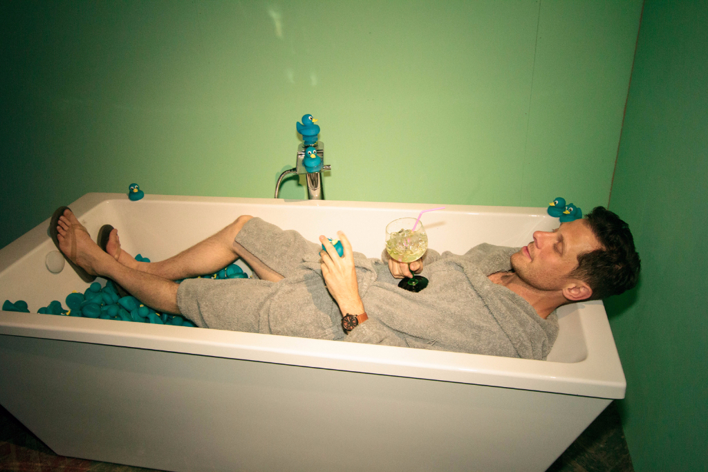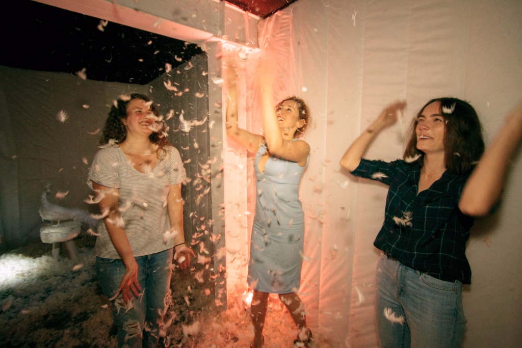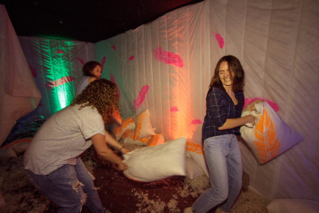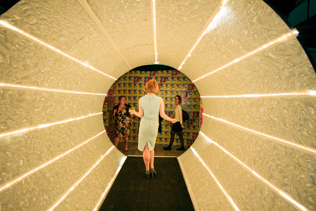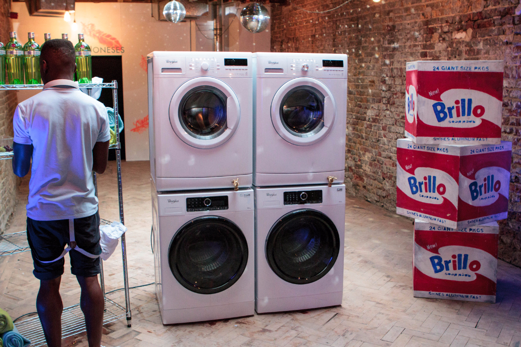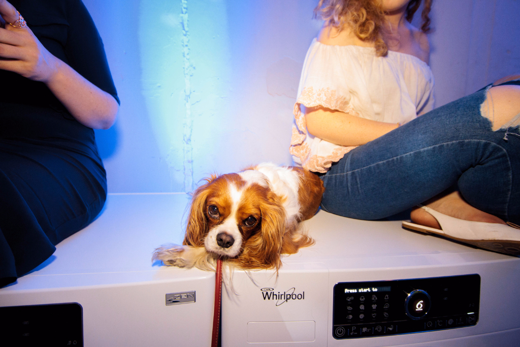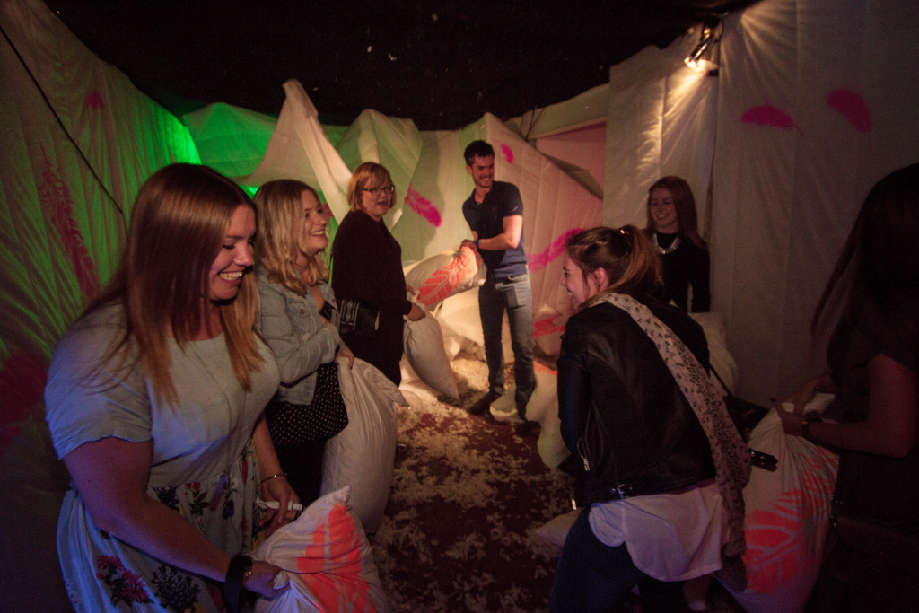 The welcome couldn’t have been warmer as we entered the kitchen of Mrs Jones, and, after a delicious round of canapés and detergent cocktails, found ourselves beckoned through the fridge and into her weird and wonderful home. One bubble fight, one pillow fight and several edible washing tablets later, and we were presented with Mr Jones (sporting nothing but a bathrobe) and his music room, fully equipped with strokeable speakers and two equally as strokeable spaniel puppies.