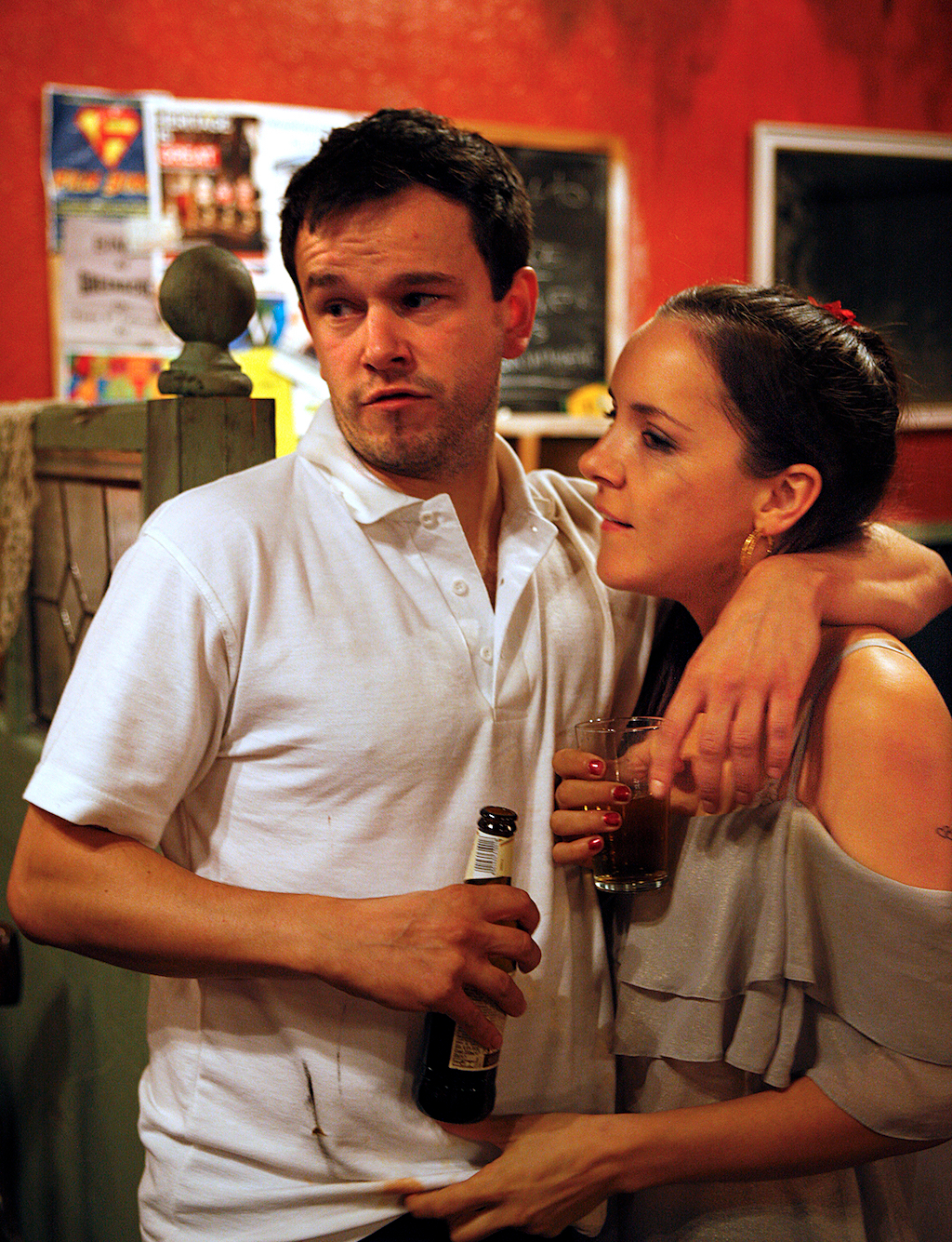 Confessional’s greatest charm comes from the semi-immersive stage, in which the cast frequently intermingles with the audience, casually flirting or stealing drinks, and the bartender serves cocktails to any brave enough to stand amongst the cast. In many ways it redeems some of the less-compelling moments as the performance itself ebbs and flows between the arguments of the drunken Leona and the referee like Monk (Raymond Bethley), who steps in when it all gets a bit too out of hand.