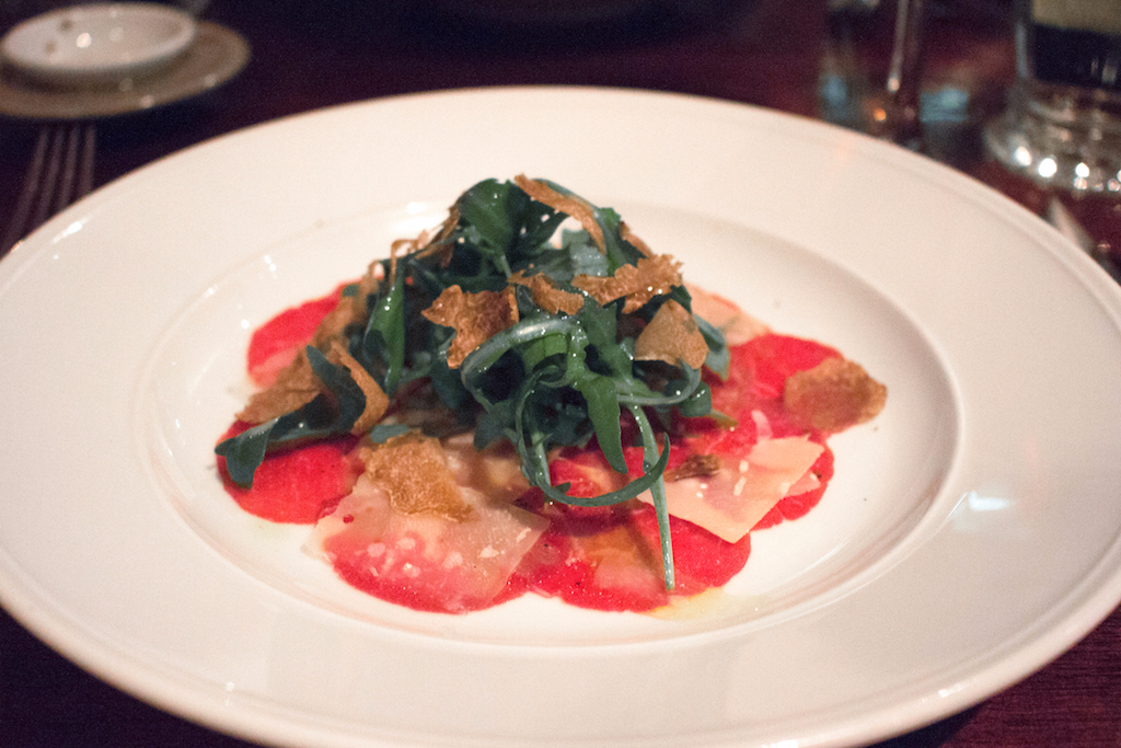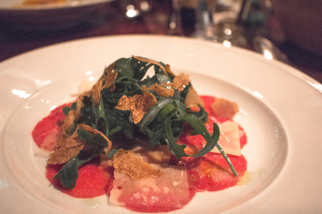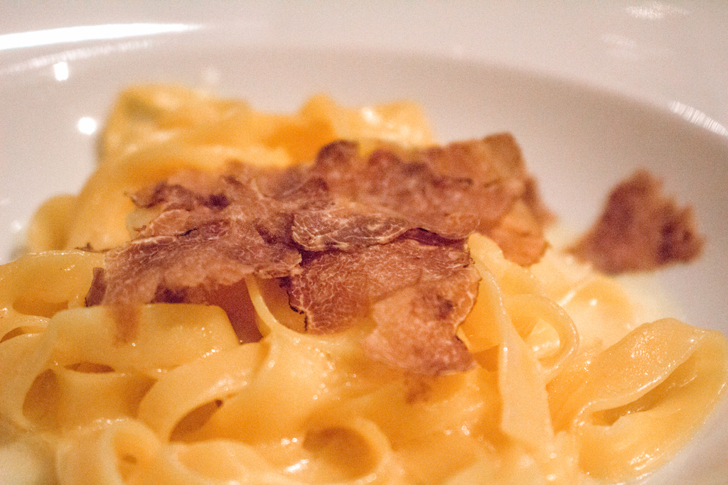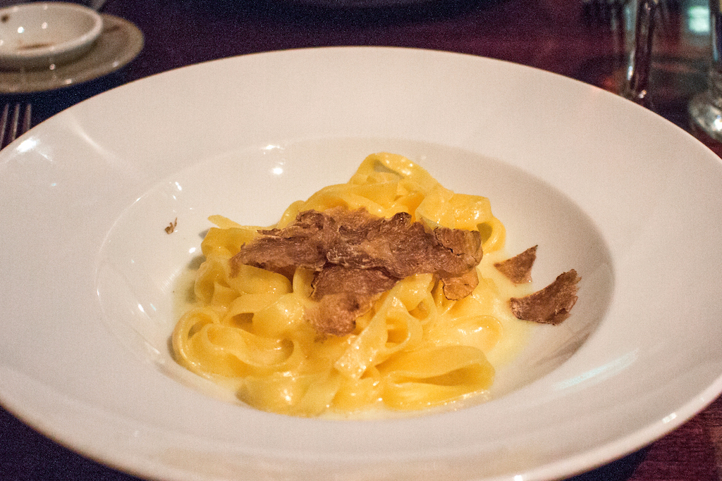 Carpaccio is the first dish to emerge from the kitchen and perfectly encapsulates what we’re hoping to see from this special white truffle menu at Diciannove: great ingredients treated with care and respect, avoiding the desire to overcomplicate. Oddly, a garnish of rocket is the star here, its slight astringency combining beautifully with fresh lemon, truffles and paper thin beef to create a dish that’s as light as a feather. Tagliatelle is heavier, but not as much as one might imagine, thanks to a cautious hand with the taleggio cream cheese sauce. Said sauce is the ideal vehicle for the fragrant truffle, allowing it to work its perfumed magic unobstructed.