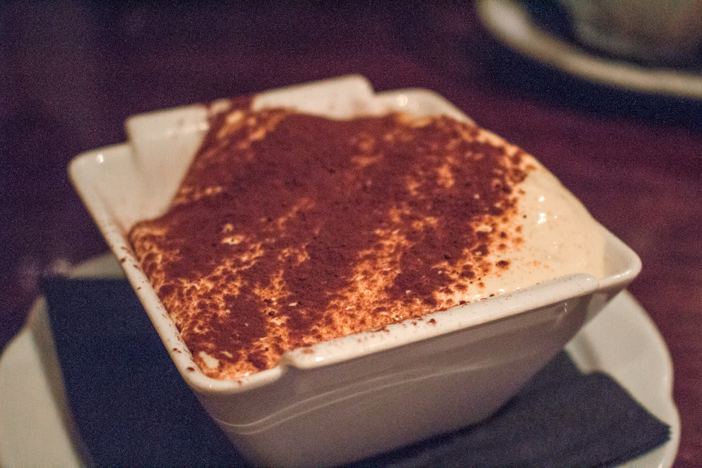 Desserts are simple but delicious: tiramisu and gelato. The hazelnut gelato is fantastic, intensely sweet but somehow not at all sickly, a shot of intense, almost caramel-laced flavour that dances across the taste buds with surprising grace. Tiramisu is moist and delicate, thankfully avoiding the over sodden sponge that tends to plague most interpretations of the dish. Both are a pleasantly light end to a meal that has otherwise been incredibly rich.