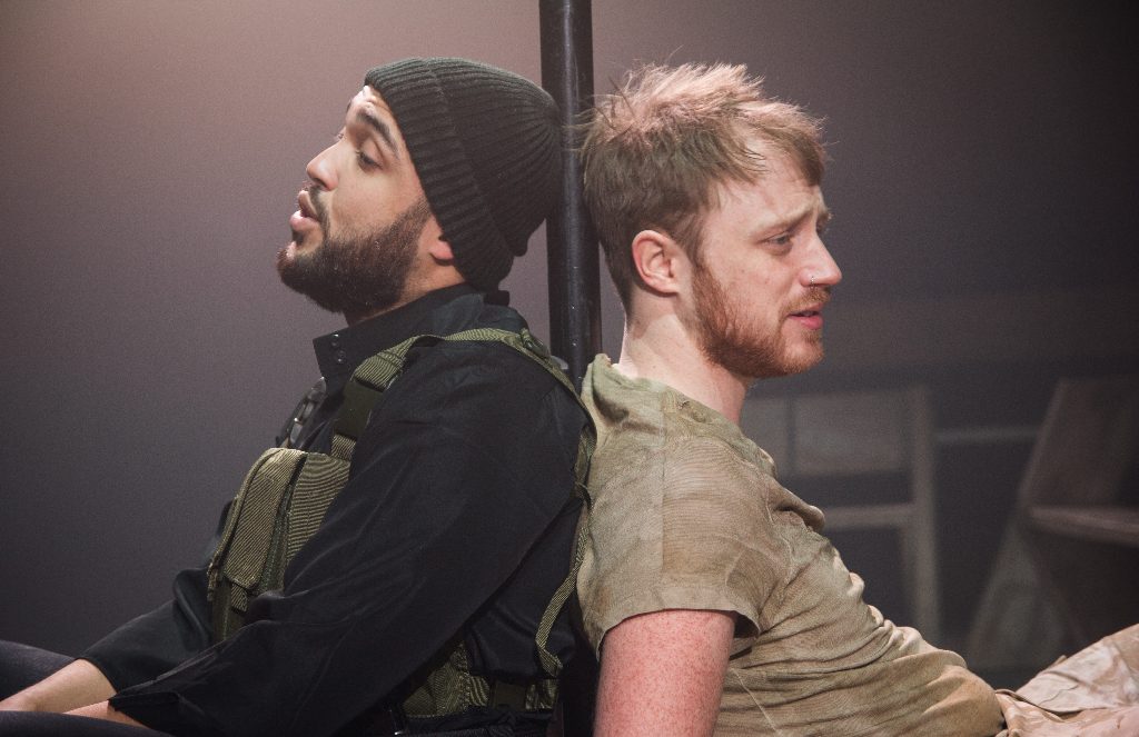 Dean is 24 years old and has joined the army to do something with his life, and because he thought “it looked fun, like Uni”. Danny (Elliot Liburd), Dean’s guard, is British too, or at least he was born in the UK, but he has fled from there to join the Islamic State. Both men come from the same country, but their skin colour is different and their beliefs clash. Yet, as they begin bonding, they realise they have things in common, such as meeting girls on Tinder, Weatherspoons, KFC and the meal deal at WH Smith – the characters’ anecdotes provoke bursts of laughter from theatregoers. But Bismillah! An ISIS Tragicomedy is not all giggles. Liburd creates great tension when he brings up politics and religion. The emptiness of the “Western bullshit society” and how fear drives men to do things they don’t want to are discussions that resonate with the audience.