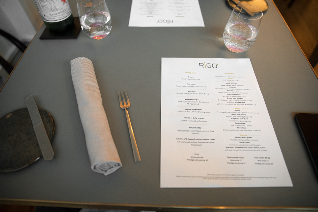 Walking past the front window of Rigo’ no one would expect the wonders that are served inside, and that’s part of the charm of this Parsons Green restaurant. By comparison, it’s the Italian version of a less hipster Clove Club. Whoever loves Italian food and a cutting-edge approach will be very glad to sit at one of these tables or at the counter where the chef will serve and explain the dishes directly to you.