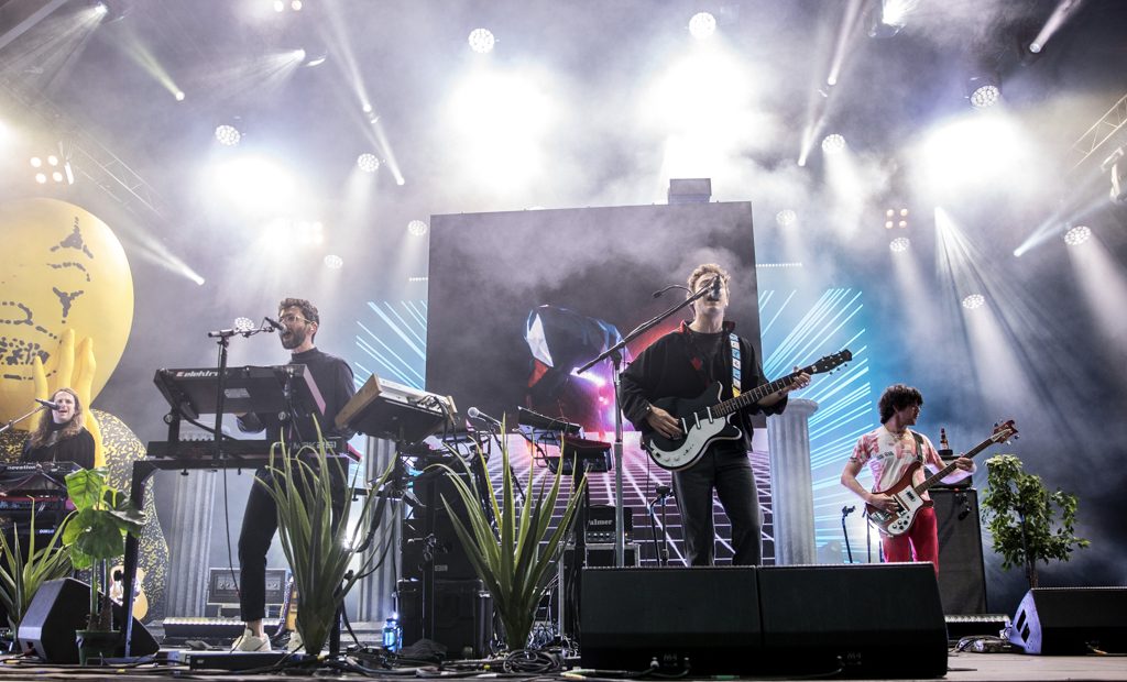 Little Dark Age chronicles the distanced relationship between the band members during their separation and, just like with the emails they exchanged to communicate, they convey this to the audience as they open with the eponymous track. MGMT successfully manage to channel 80s synth-pop while keeping it modern and relevant; that is the theme of their album and songs like When You Die. The 80s vibe extends to the stage, a true jungle rave, with a massive disco ball, plants and an inflatable God-knows-what behind them that resembles a clown skeleton. Visuals like caves and eyes – and whatever would result if you searched trippy – appear on a screen.