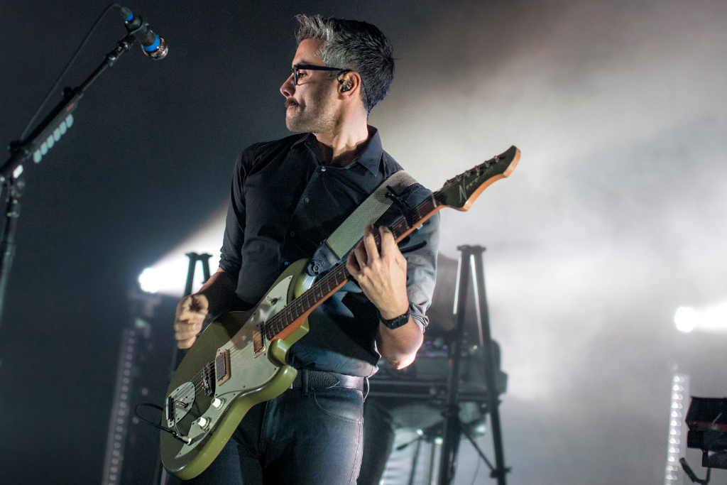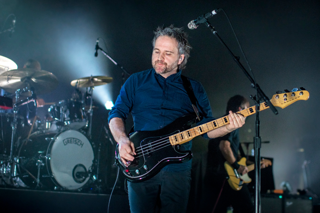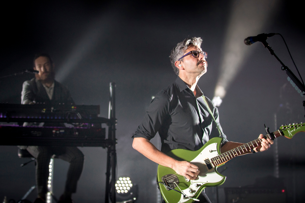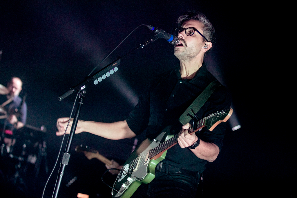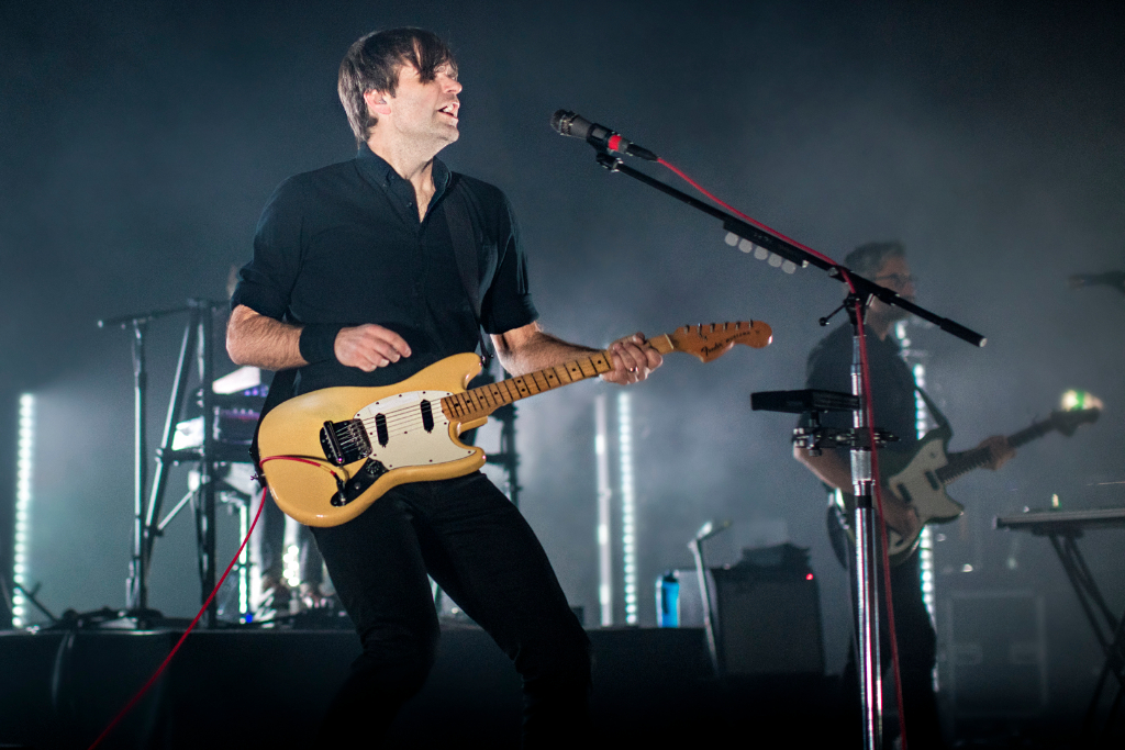 Under purple floodlights the group appears and, without pause to take in the sold-out venue, the first warbly synth notes resound, drums kick in and Ben Gibbard’s voice slices through the sonic haze, “I dreamt we spoke, I dreamt we spoke again”. The opener off their new work doubles as tonight’s. The singer’s hot, breathy vocals stretch out the chorus vowels – for anyone familiar with these lyrics, this is classic Death Cab: a poetic meditation on mourning. Somehow, Gibbard’s voice hasn’t changed a touch in 20 years of performing.