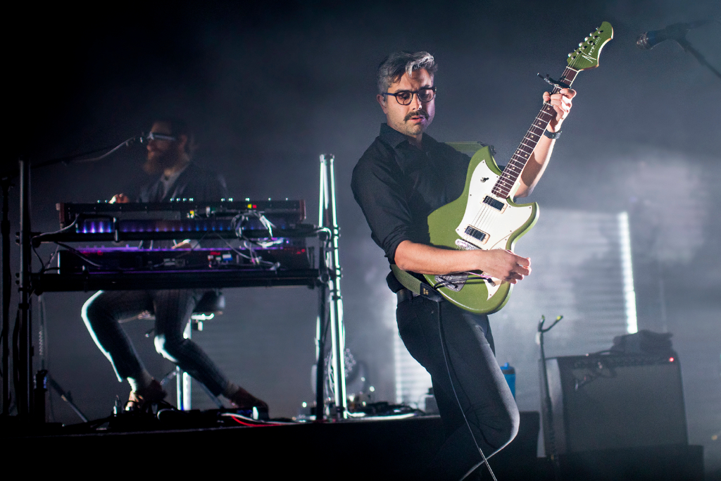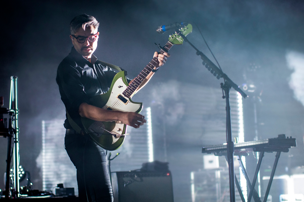 Death Cab for Cutie have two opposite strengths: Gibbard alone, churning to the poetry of his lyrics, or the five-piece together, heads down, jamming. In between they risk repetitiveness – not all their songs stand alone outside an album context, and this is apparent tonight. But the band plays to its strengths: on 60 & Punk, the frontman stands solo, immersed in a rust-coloured spotlight, lulling the crowd into a rumination on falling from grace. This is a perfect example of the group’s move from the mysticism of earlier records to a wrought realism – touchingly universal observations penned by an artist. This is in stark contrast to the four-minute, virtuosic instrumental opening to I Will Possess Your Heart – the slow crescendo has the audience on their toes, craning, waiting desperately for the drop… “How I wish you could see the potential.”