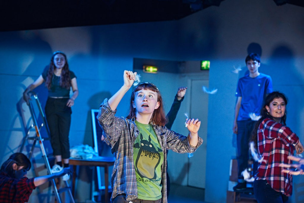 Another issue is the general style. Rather than having deep, well-written scenes that have time to develop, here we are presented with many tiny snippets that generally don’t do much. It doesn’t help that the dreadful sound design is extremely over-the-top and noisy, making a lot of it – especially the last half-hour or so – almost unbearable to watch. Perhaps these decisions are made to hide the generally woody dialogue. At least the play isn’t moralising, which it easily could have been under these circumstances. There are a few contrived moments that shoehorn “messages” into the mix, but they are generally short and painless.