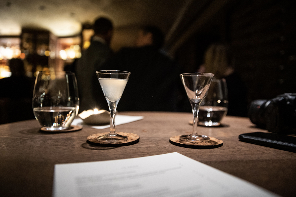 As we perch on our stools, a small yet refreshing welcome tipple is offered, prepping the mouth with cucumber and gin. The creations by mixologist Oskar Kinberg sweep away many of our expectations. With the precision of an alchemist, he carefully blends each concoction bringing together both known and less familiar flavours with subtlety. Quite a few comprise syrups that take a good 24 hours to make. One of the finest illustrations of this is the Cross-Eyed Mary – it’s no coincidence that it’s a bestseller. A piece of dried tomato floating on the top is a hint of the rarified essence with which the vodka and fino are mixed. The solution used is an extract from the vegetable, squeezed and freed from the pulp to release pure flavour. A powder of dried capers around the rim awaken the taste buds by stark contrast: this is an incredible feast for the whole mouth.