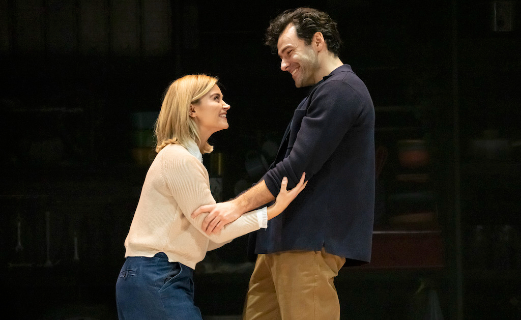 Steiner explores the metamorphosing nature of speech. In the early stages of romance, Bernadette ponders “couples’ dialect”: when two people spend enough time together, they develop a love lingo, creating unique patterns and phrases that are alien to the outsider. This becomes immediately relevant, as the couple find tricks to get around the law, including melding several words into one. “Love you” becomes “lovou” and “do you understand?” shrinks to “dunderstand?”. These feel claggy when repeated in the theatre, like an awkward rendition of Nadsnat, the made-up language from A Clockwork Orange.