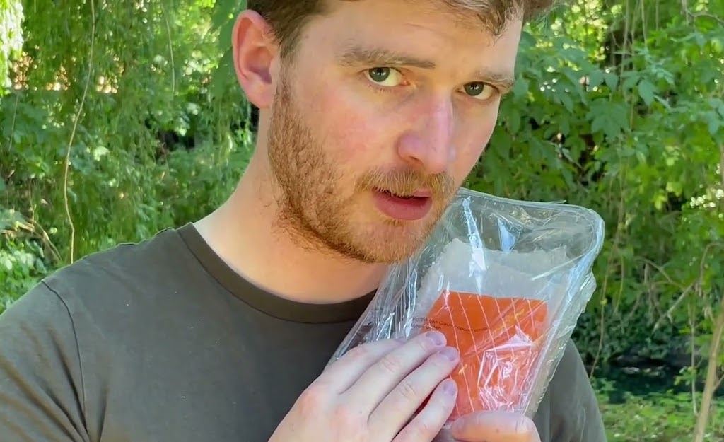 We are promised gig-theatre, and the soaring harmonised voices and jubilant freedom of folk improvisation is immediately transportive. Where we are going, however, no one could possibly predict. The trio introduce themselves: Fin (Rory Gradon) and Fiona (Elinor Peregrin) are a couple, soppily in love, and Sam (Elisabeth Flett) is “just a very talented musician they picked up along the way”. After exploring some innocuous fish-themed songs, the evening unravels when Fin becomes overwhelmed at the thought of his connection to his aquatic ancestors, referencing the Irish legend The Salmon of Knowledge. The band proceed to rather deftly weave Irish folklore and music with “Instagram infographics”, providing an engaging insight into the rich history and currently alarming plight of salmon (one in four kept in fish farms don’t survive to make it to the table). The audience are now swimming in a surrealist Seaspiracy. “Reach out your fins!” urges Fiona “you are all salmon!”.
